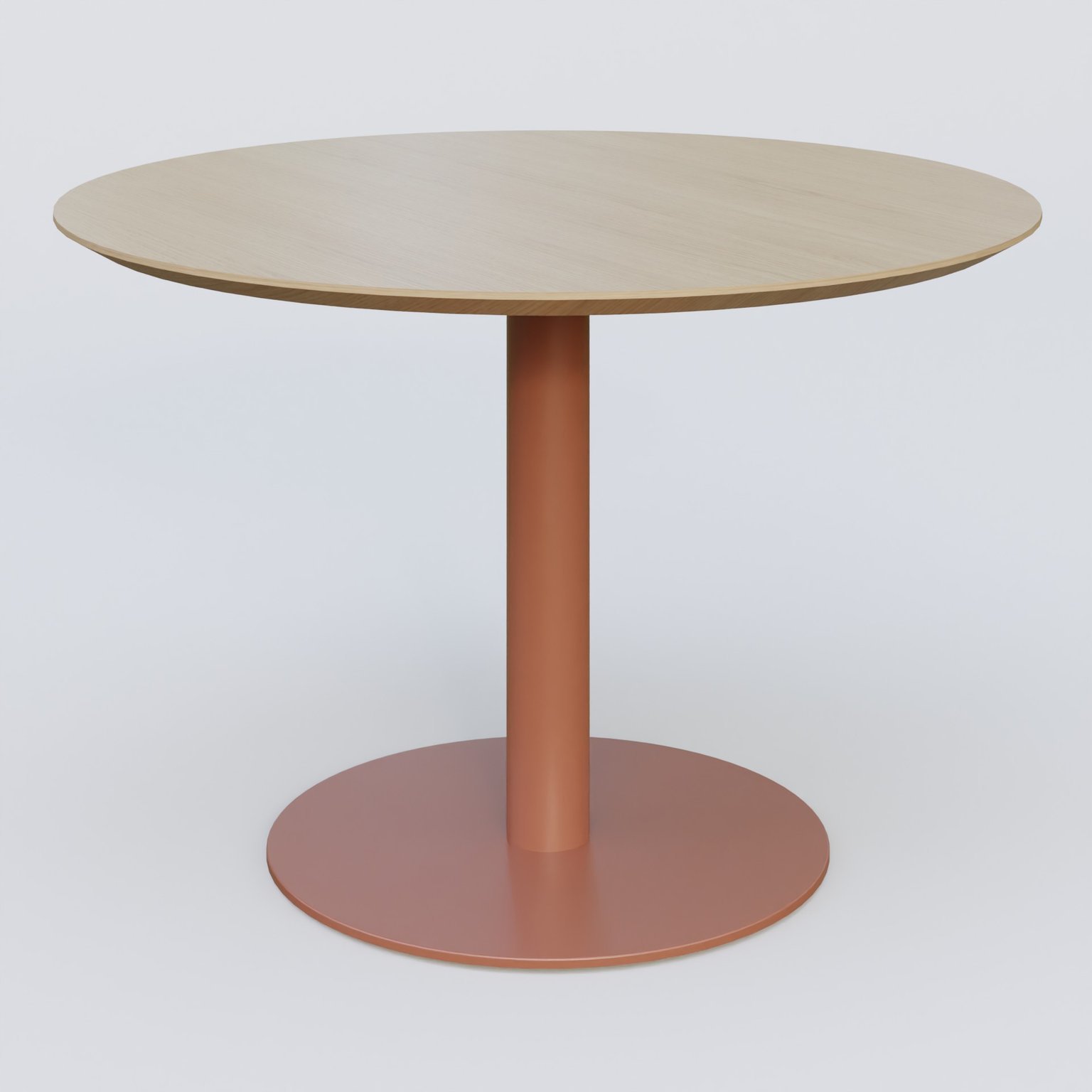 Table Basse Fashion Styl piètement colonne en métal et plateau bois. Plateau Chêne et pietement Brun cuivré (RAL 8004).