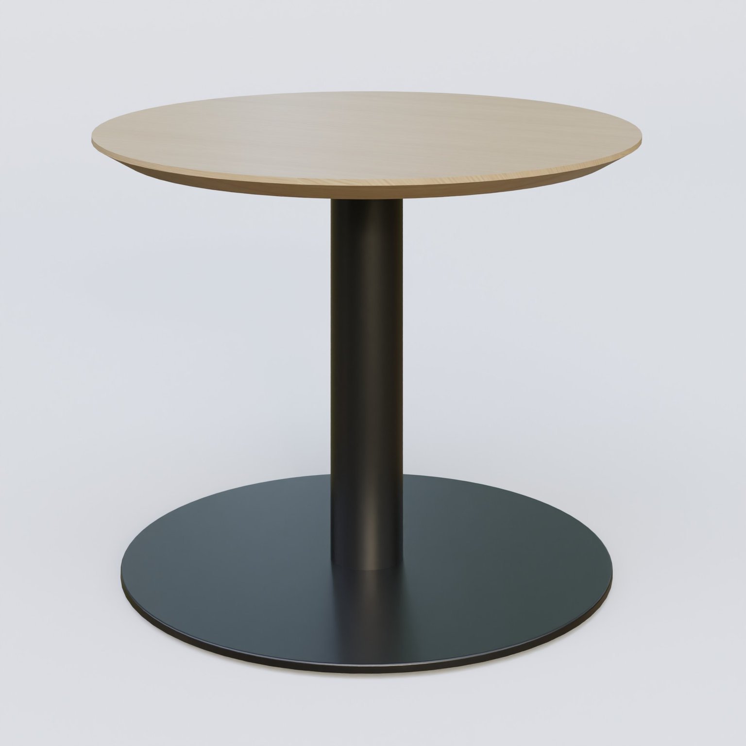 Table Basse Fashion Styl piètement colonne en métal et plateau bois. Plateau Chêne et pietement Noir (RAL 9005).