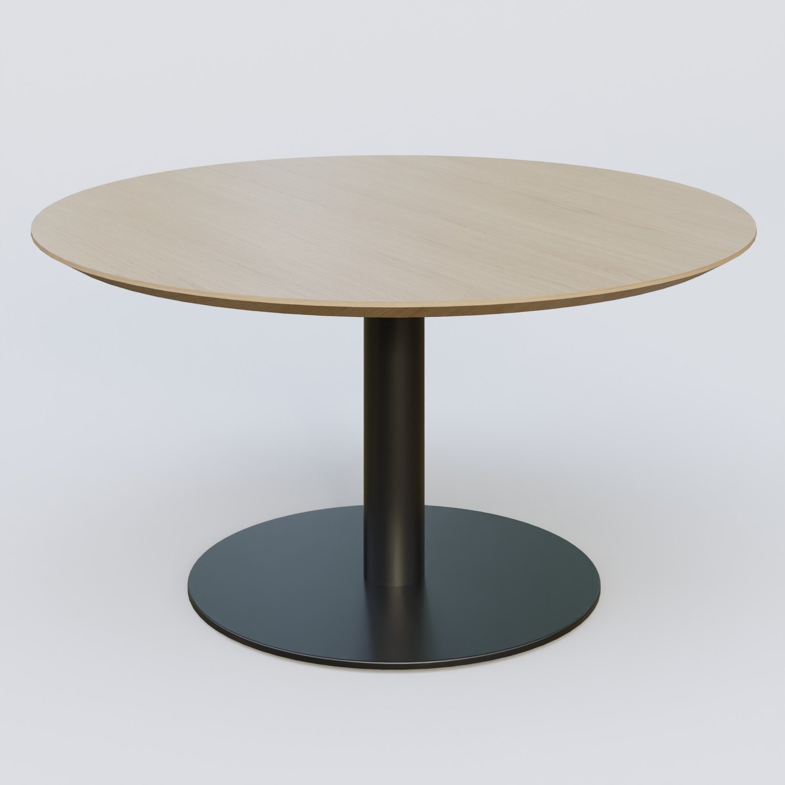 Table Basse Fashion Styl piètement colonne en métal et plateau bois. Plateau Chêne et pietement Noir (RAL 9005).