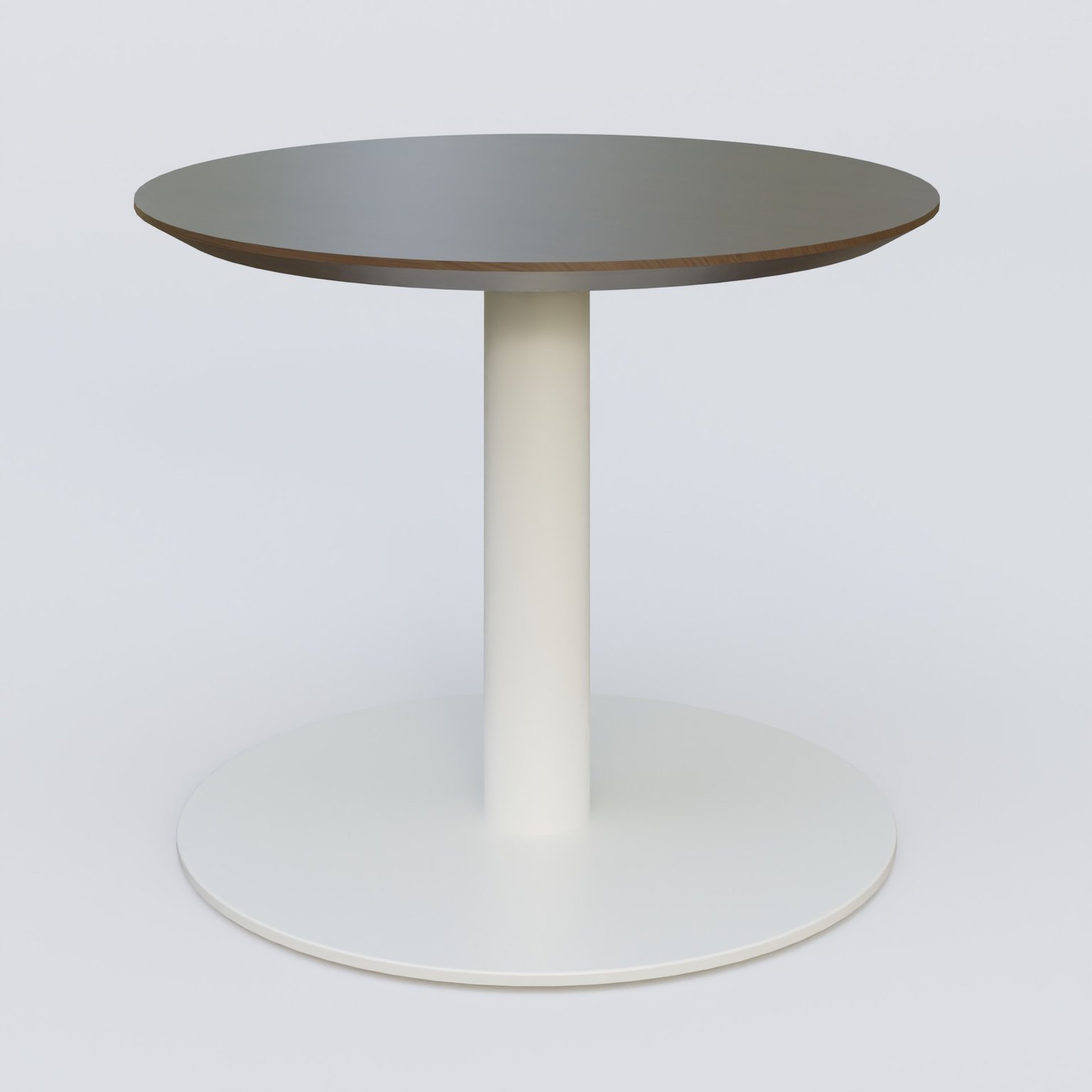 Table Basse Fashion Styl piètement colonne en métal et plateau bois. Plateau Chêne Moka et pietement Blanc (RAL 9010).