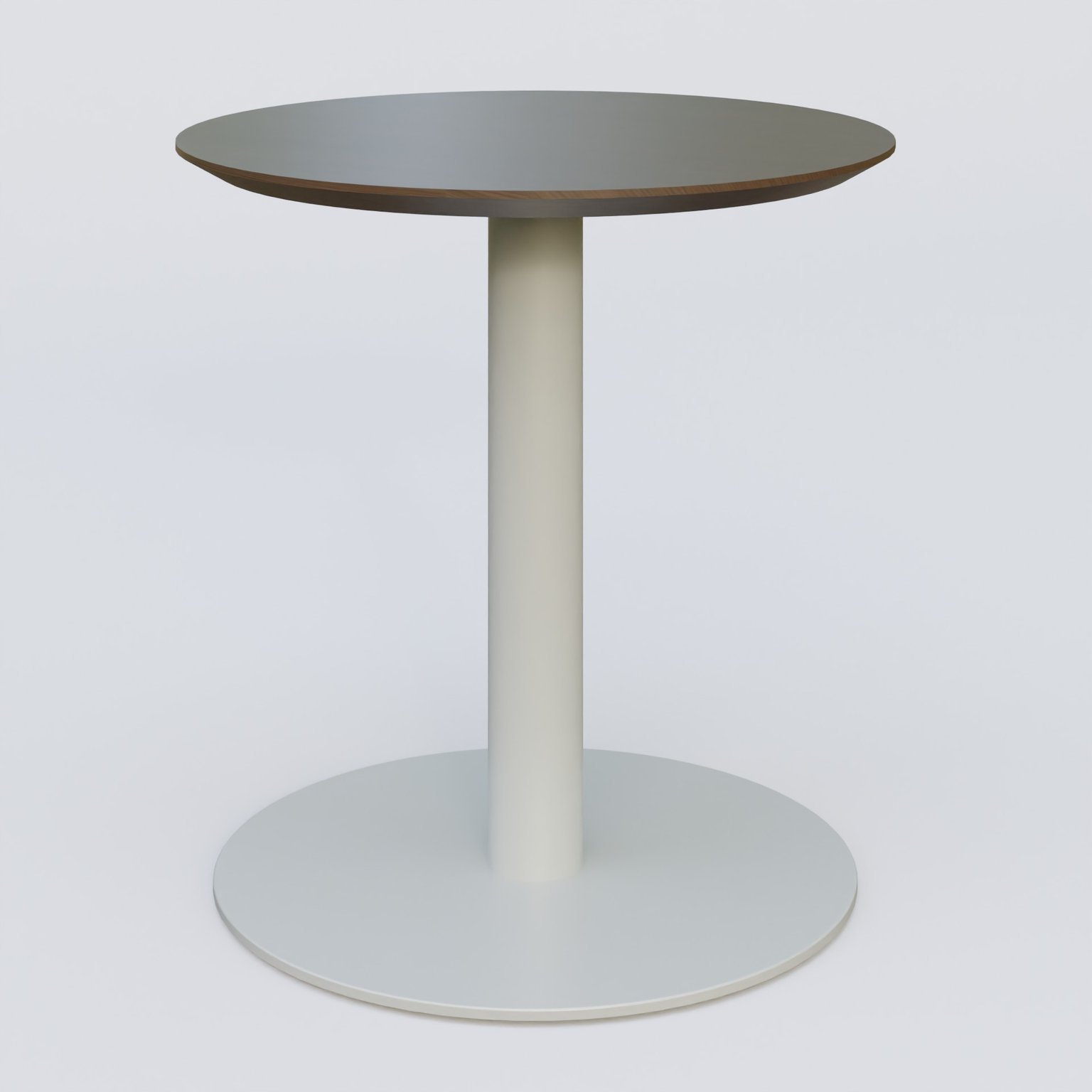 Table Basse Fashion Styl piètement colonne en métal et plateau bois. Plateau Chêne Moka et pietement Gris (RAL 7038).