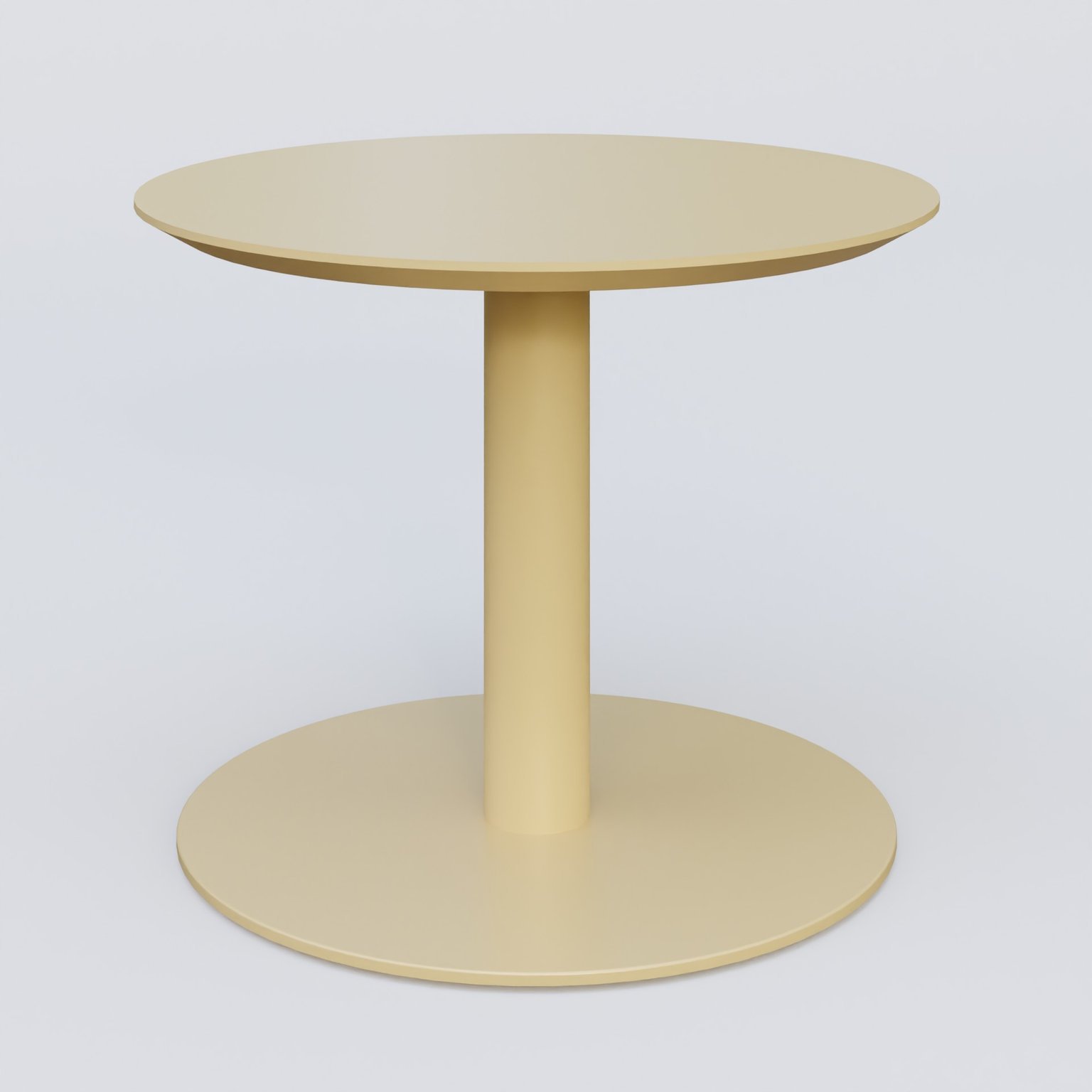Table Basse Fashion Styl piètement colonne en métal et plateau bois. Plateau Jaune Cuivre (RAL 1002) et pietement Jaune Cuivre (RAL 1002).