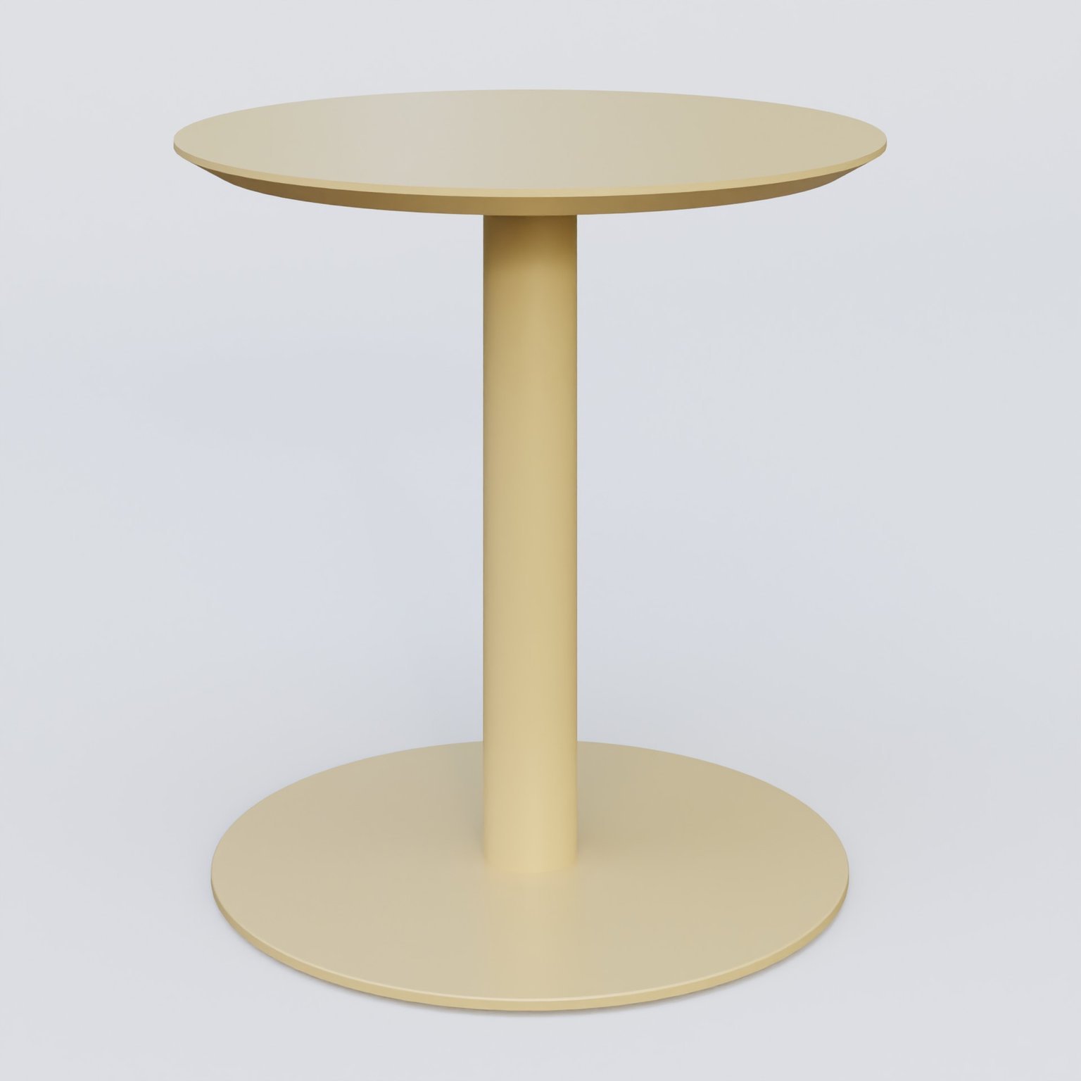 Table Basse Fashion Styl piètement colonne en métal et plateau bois. Plateau Jaune Cuivre (RAL 1002) et pietement Jaune Cuivre (RAL 1002).