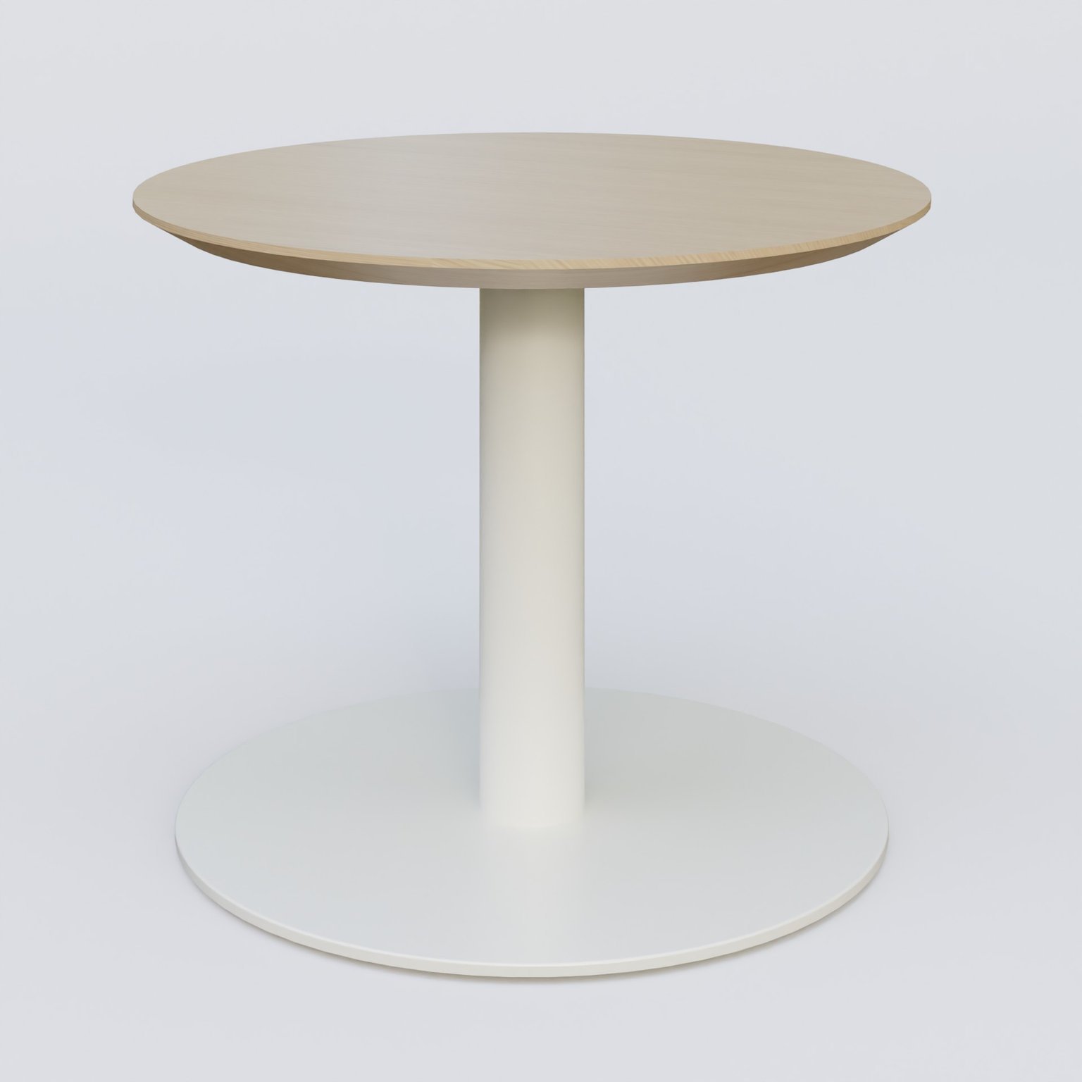 Table Basse Fashion Styl piètement colonne en métal et plateau bois. Plateau Chêne et pietement Blanc (RAL 9010).
