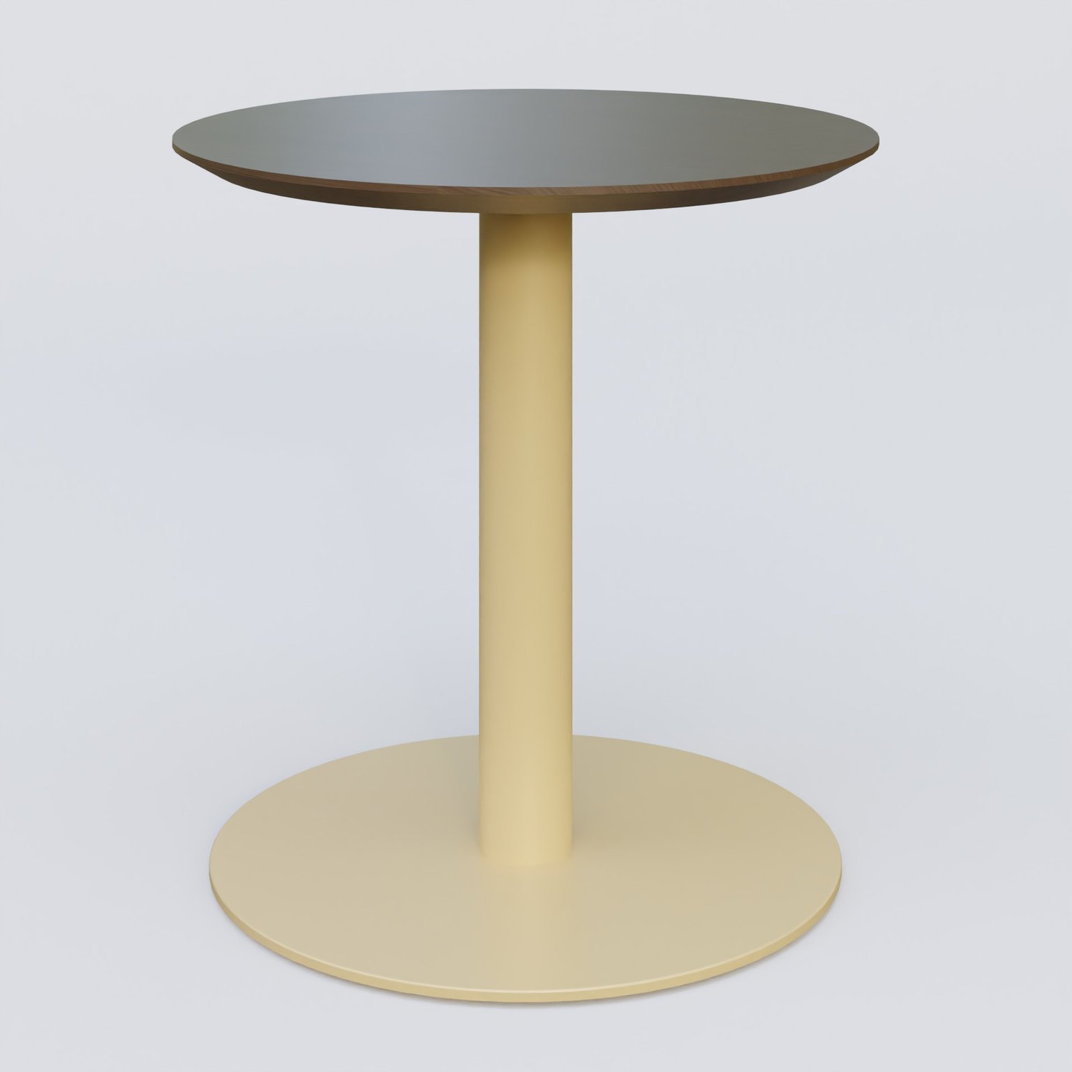 Table Basse Fashion Styl piètement colonne en métal et plateau bois. Plateau Chêne Moka et pietement Gris (RAL 7038). ral7038 cheneMokaCm