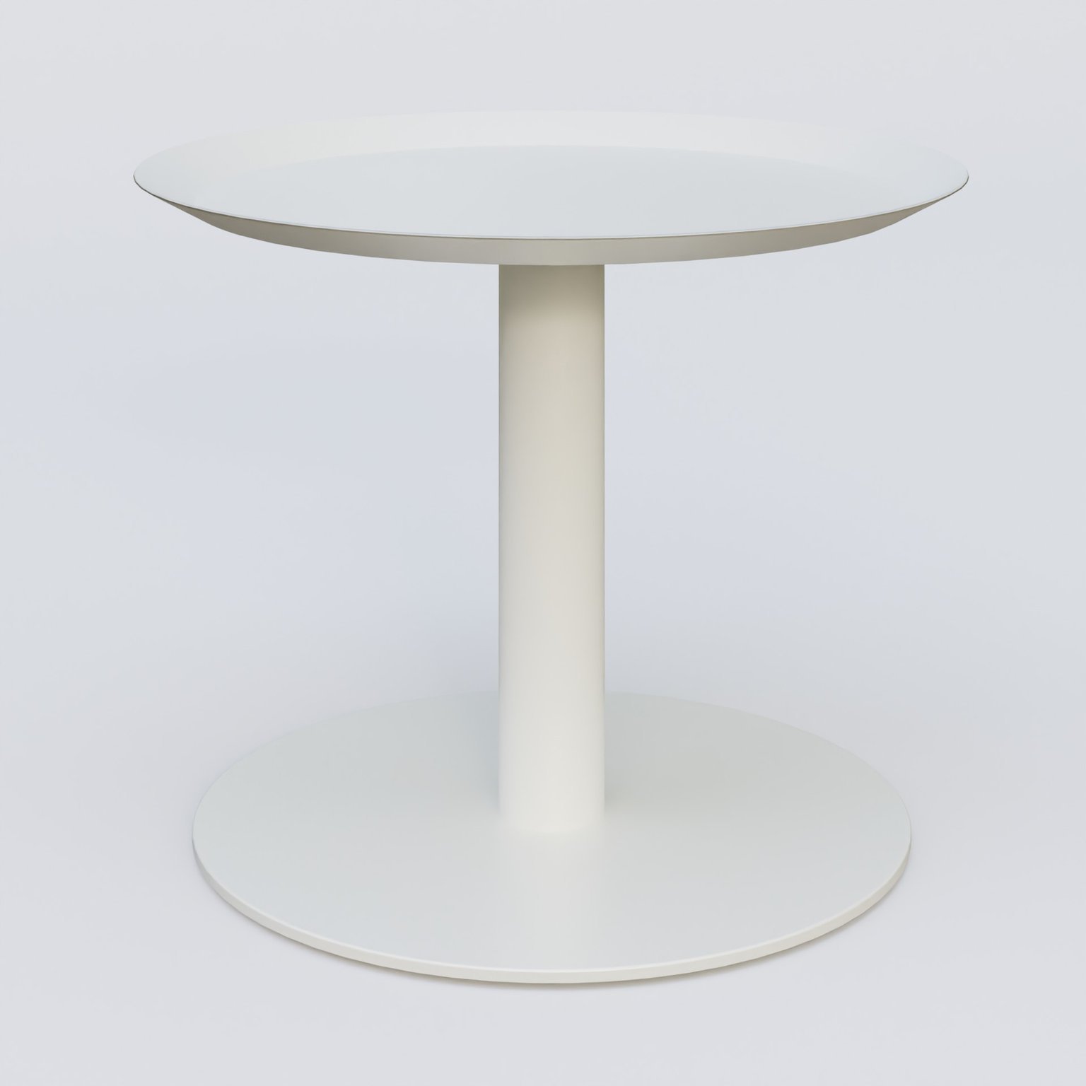 Table Basse Fashion Styl piètement colonne métalique. Plateau Blanc (RAL 9010) et pietement Blanc (RAL 9010).