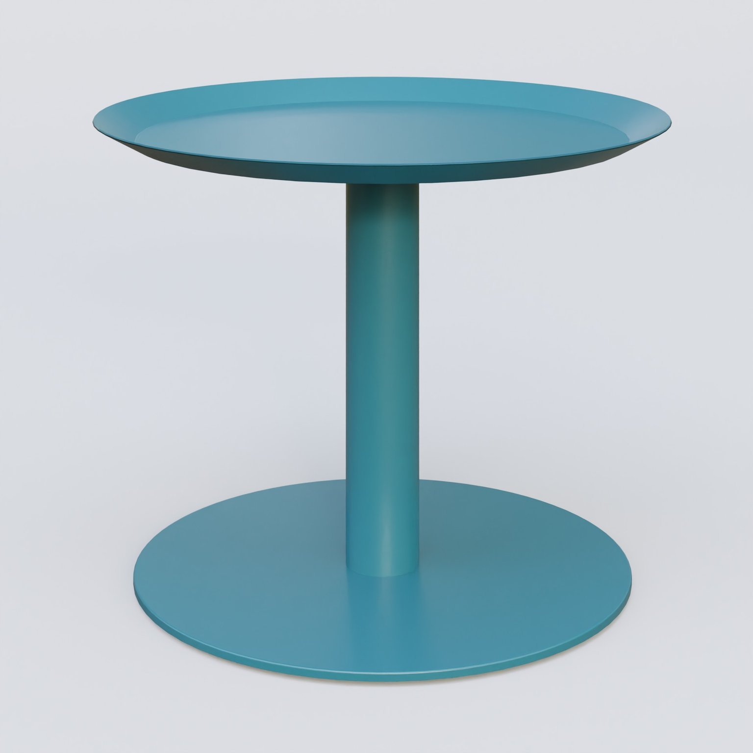 Table Basse Fashion Styl piètement colonne métalique. Plateau Bleu Petrole (RAL 5025) et pietement Bleu Petrole (RAL 5025).