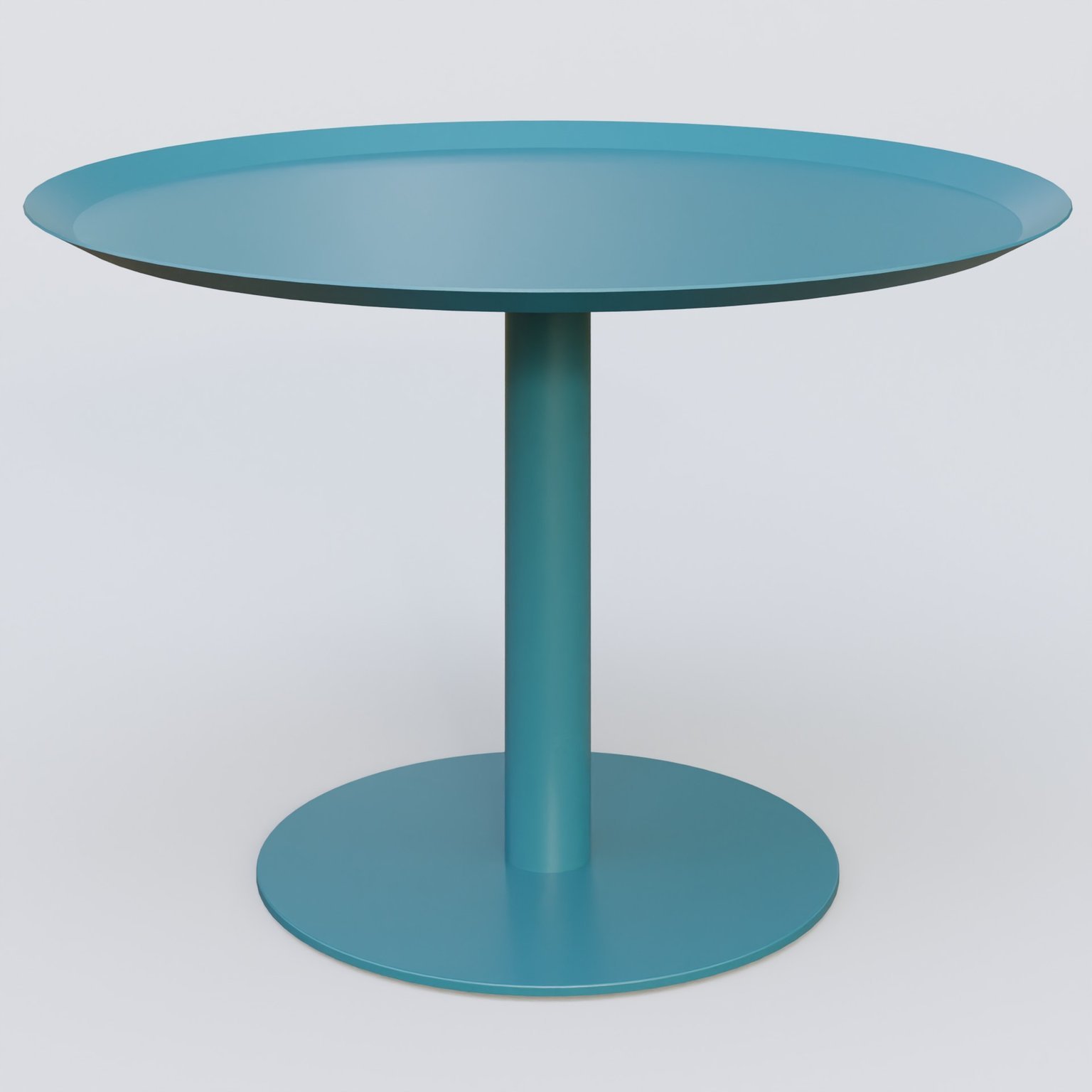 Table Basse Fashion Styl piètement colonne métalique. Plateau Bleu Petrole (RAL 5025) et pietement Bleu Petrole (RAL 5025).