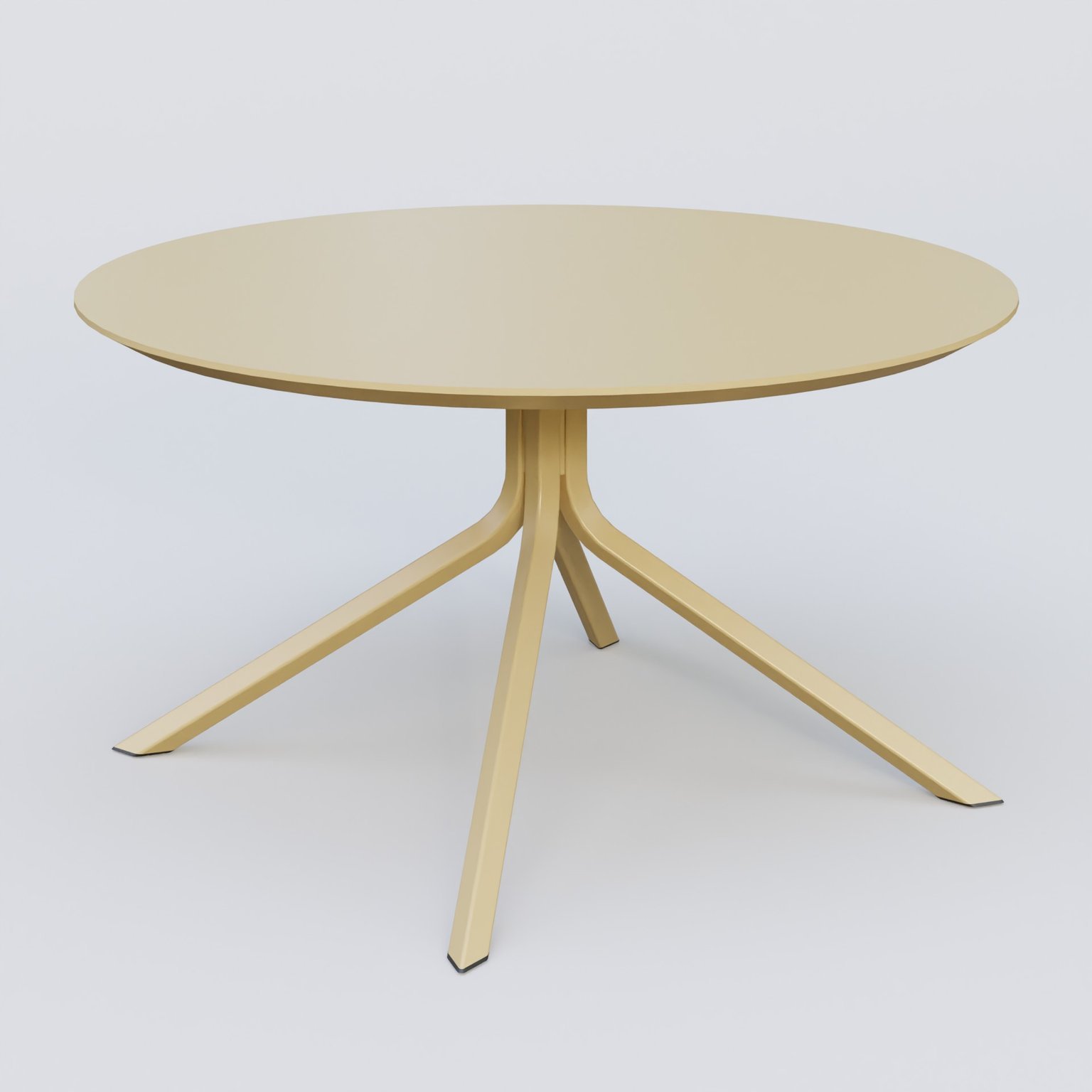 Table Basse Fashon Styl piètement 4 pieds en métal et plateau bois. Plateau Jaune Cuivre (RAL 1002) et pietement Jaune Cuivre (RAL 1002).