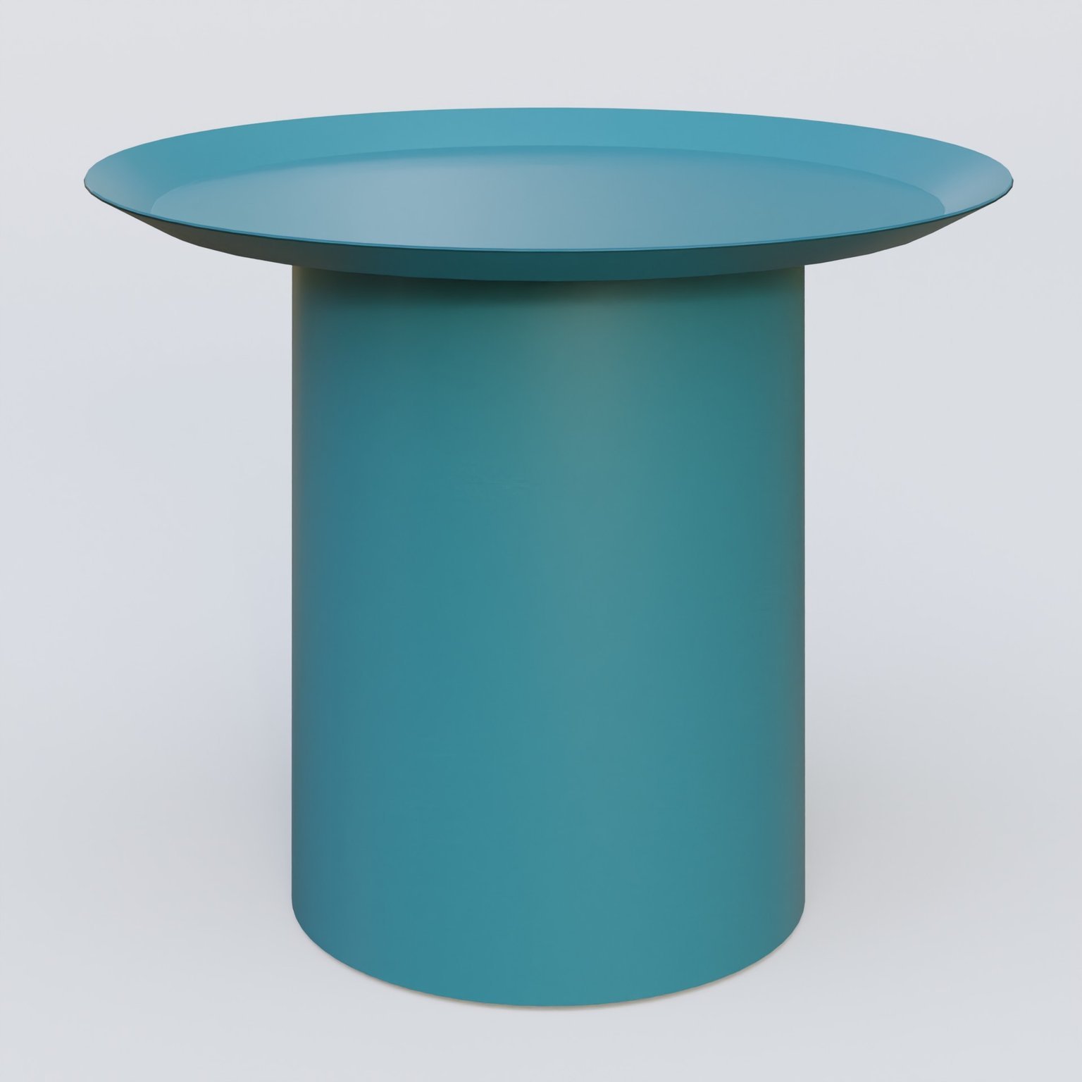 Table Basse Fashon Styl piètement colonne métalique D-26 cm. Plateau Bleu Petrole (RAL 5025) et pietement Bleu Petrole (RAL 5025).
