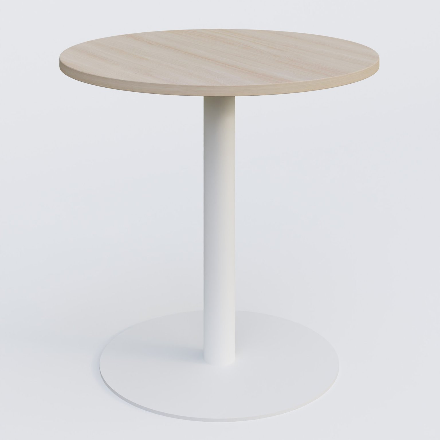 Table de réunion pietement colonne plateau D 80 cm. Plateau Chêne clair et pietement Blanc. cheneCe