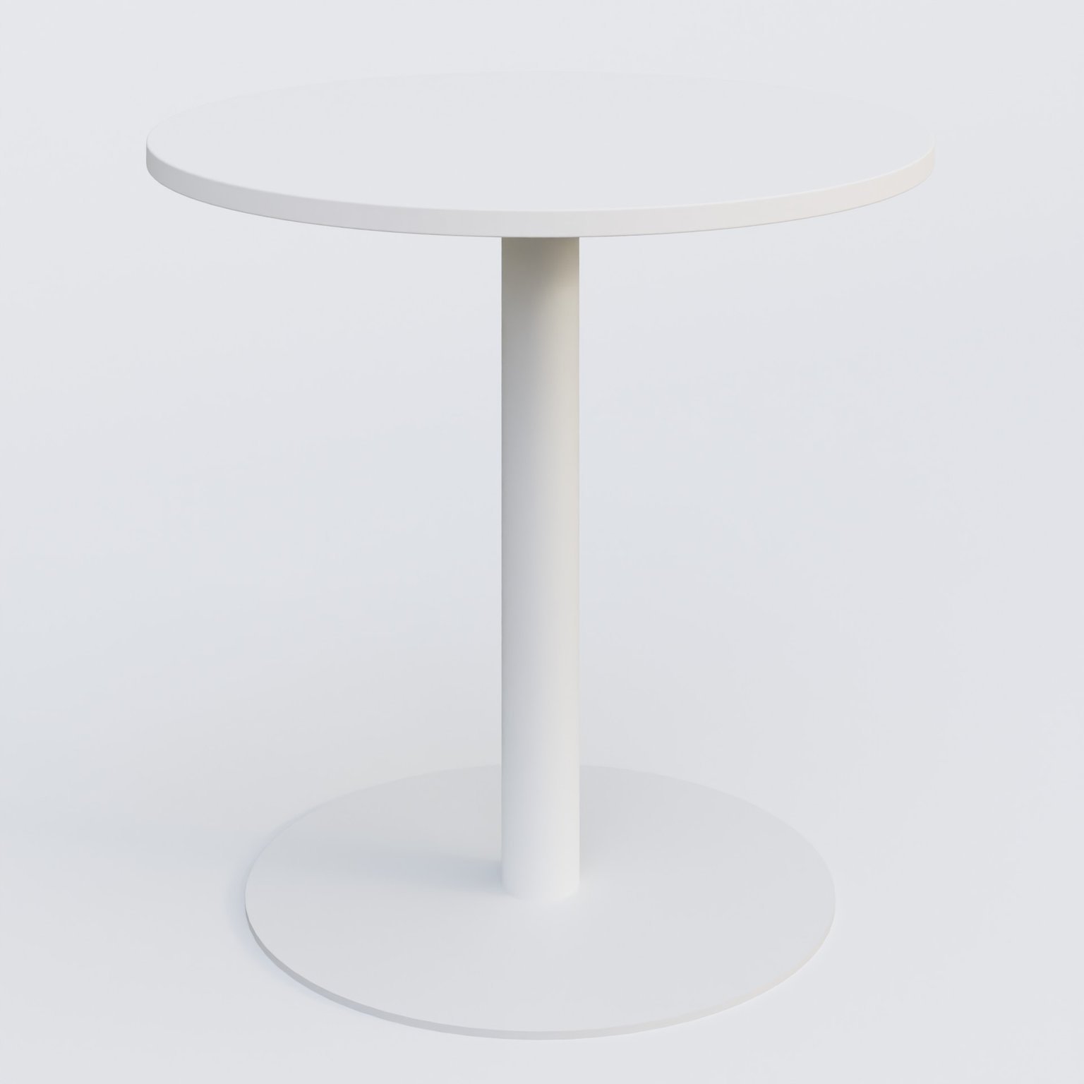 Table de réunion pietement colonne plateau D 80 cm. Plateau Blanc et pietement Blanc.