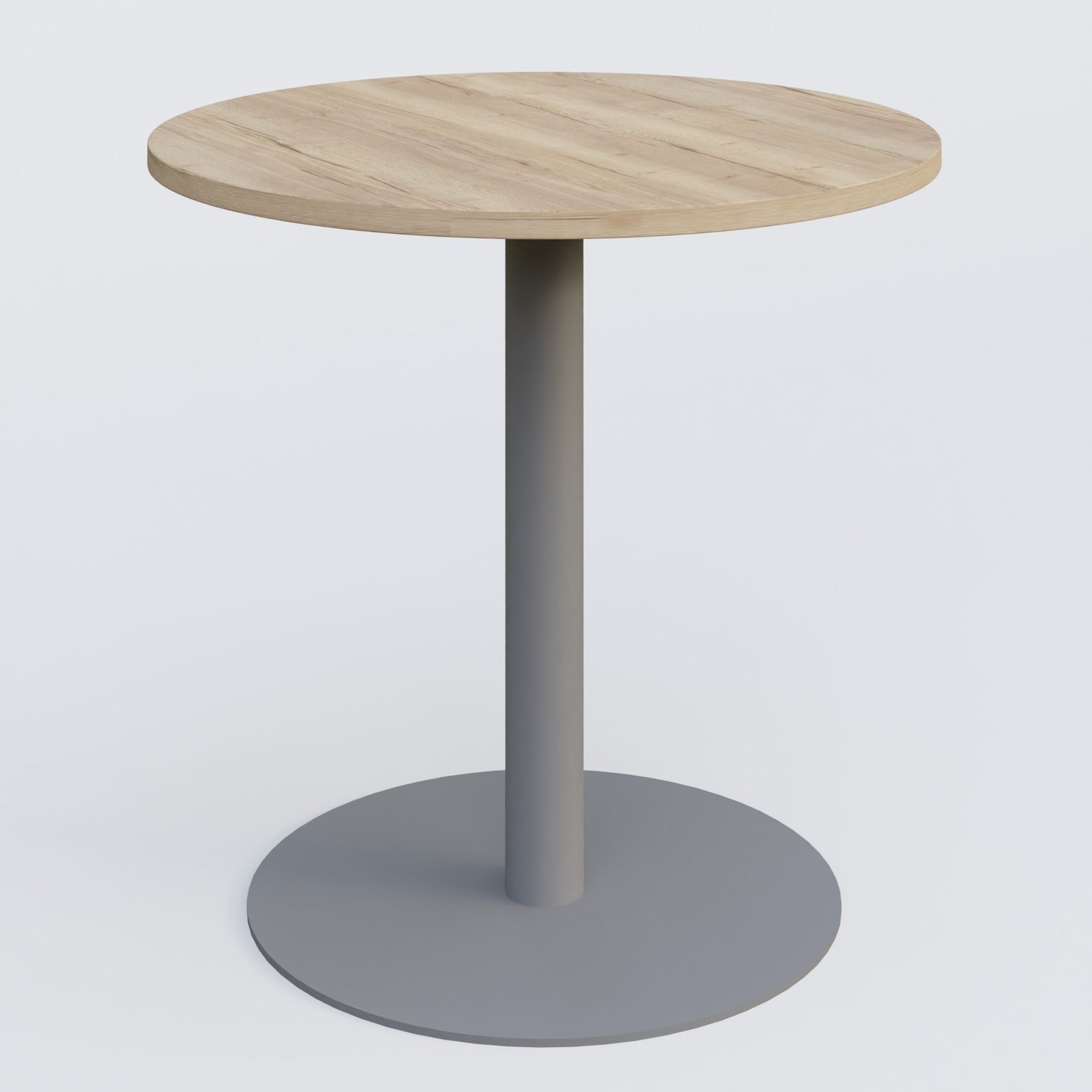 Table de réunion pietement colonne plateau D 80 cm. Plateau Chêne naturel et pietement Aluminium.
