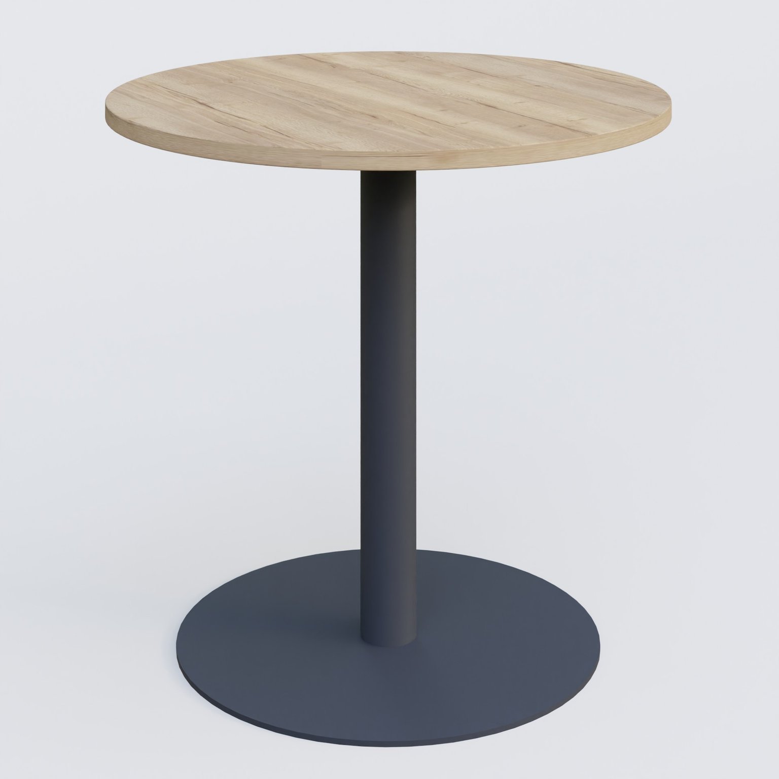 Table de réunion pietement colonne plateau D 80 cm. Plateau Chêne naturel et pietement Anthracite.