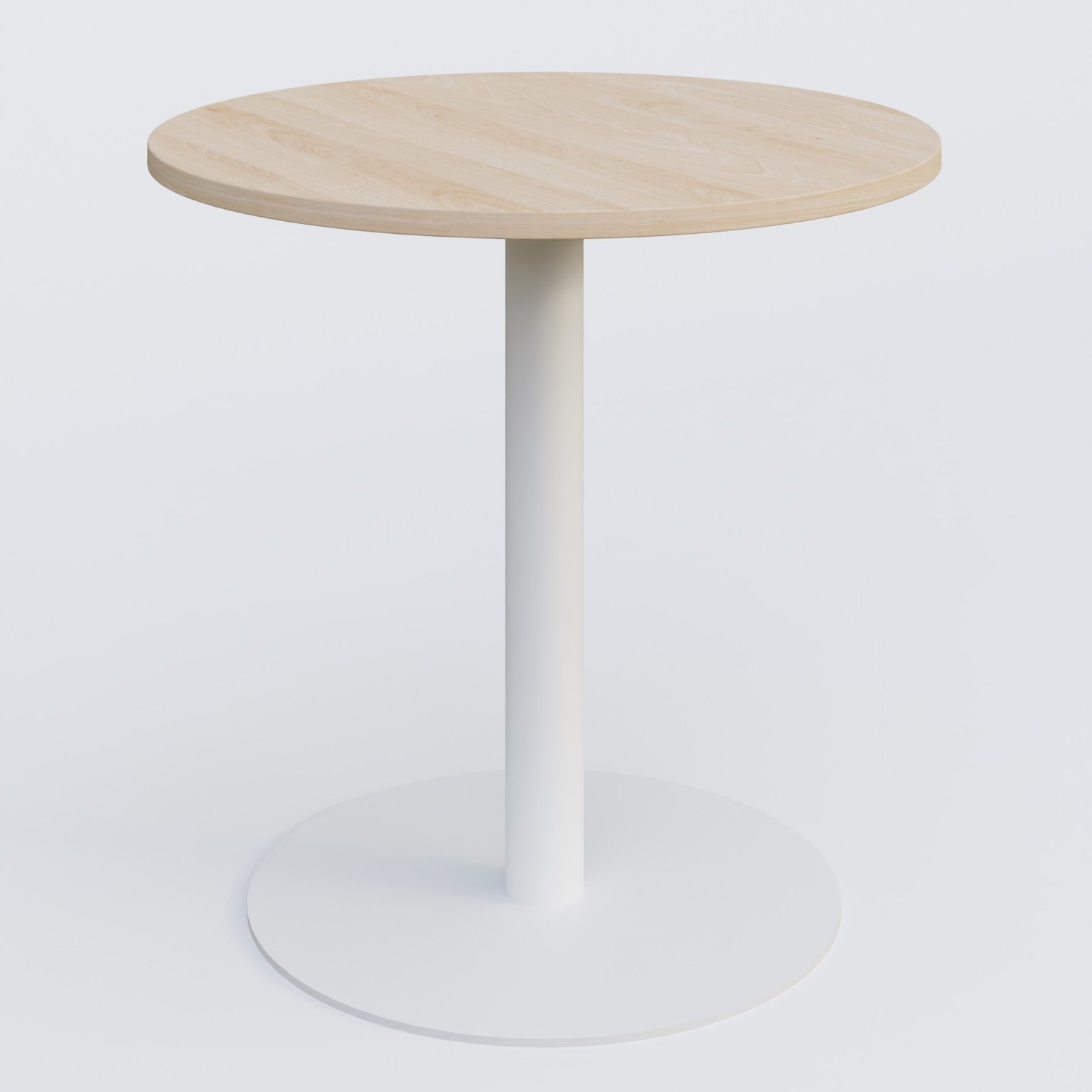 Table de réunion pietement colonne plateau D 80 cm. Plateau Hêtre et pietement Blanc.