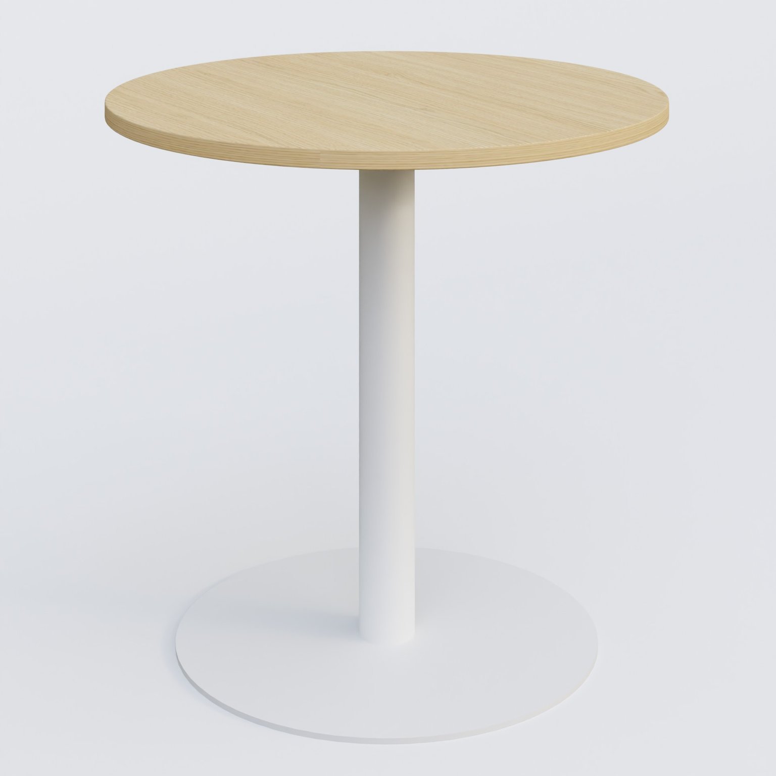 Table de réunion pietement colonne plateau D 80 cm. Plateau Acacia et pietement Blanc.