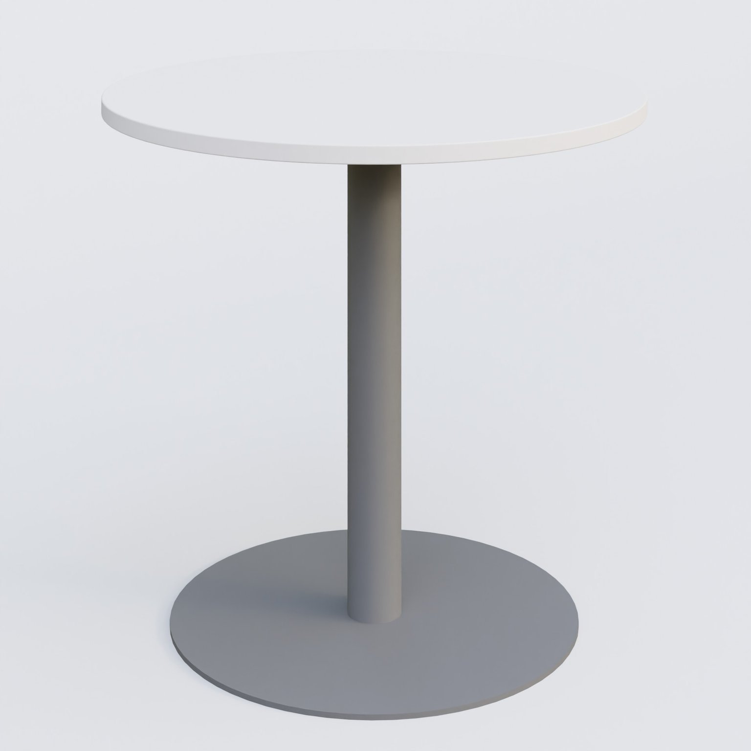 Table de réunion pietement colonne plateau D 80 cm. Plateau Blanc et pietement Aluminium.