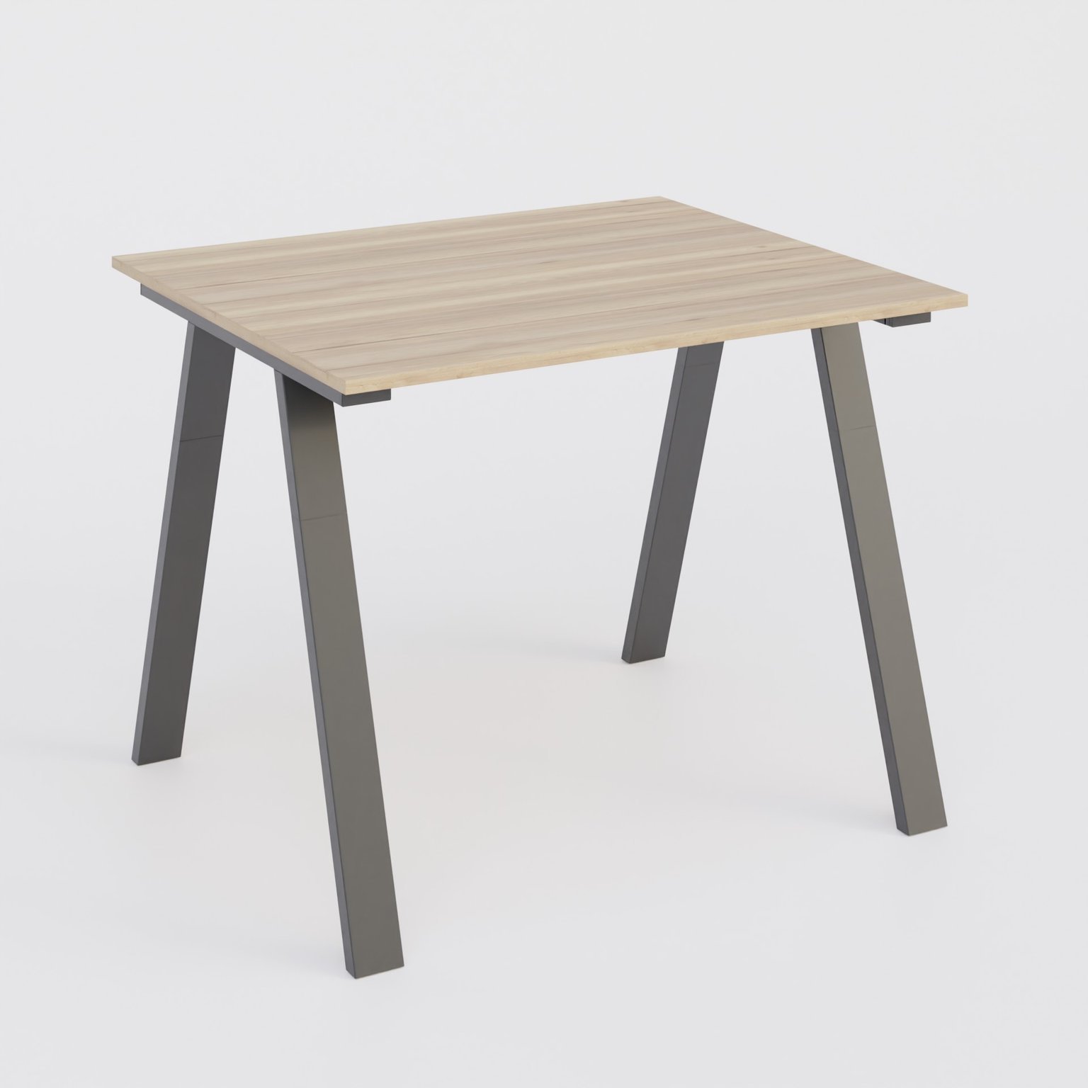Plateau finition Chêne naturel. Pied en forme de A de section 40*100 mm . finiton métal Noir mat.