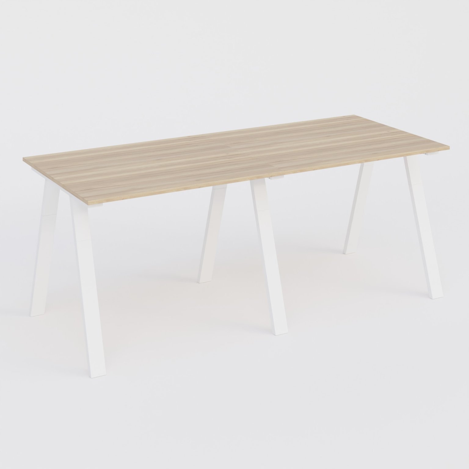 Plateau finition Chêne naturel. Pied en forme de A de section 40*100 mm . finiton métal Blanc.
