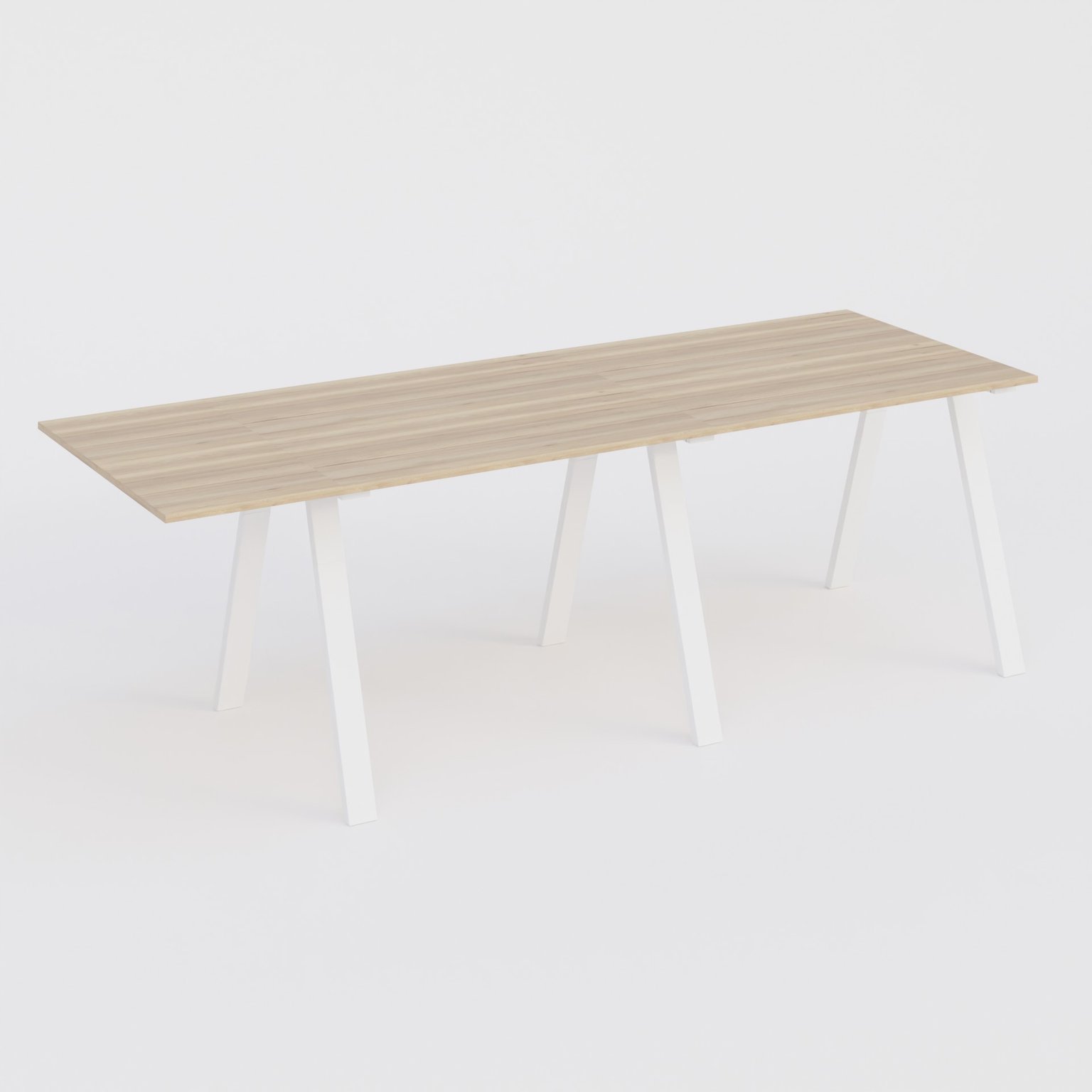 Plateau finition Chêne naturel. Pied en forme de A de section 40*100 mm . finiton métal Blanc.