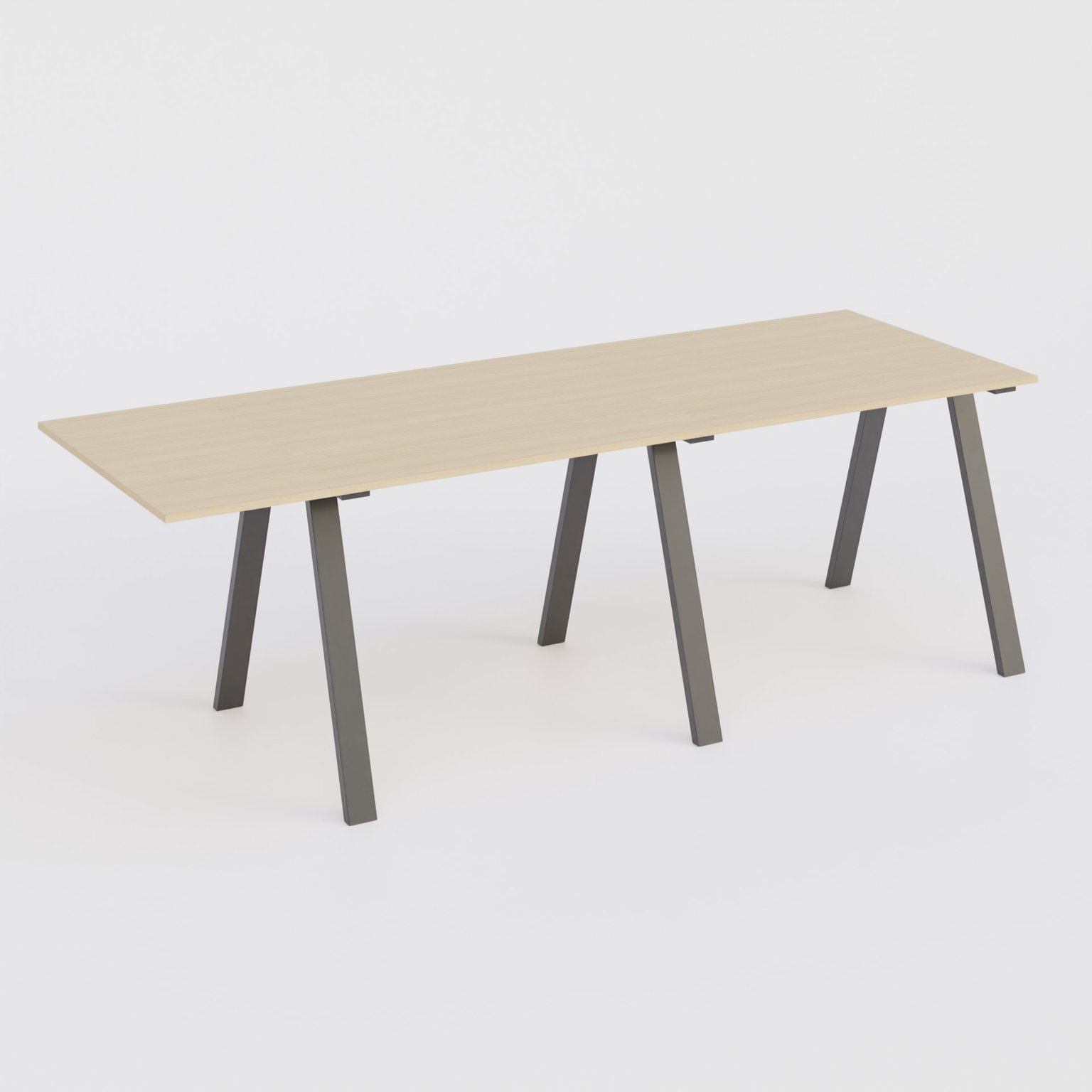 Plateau finition Chêne clair. Pied en forme de A de section 40*100 mm . finiton métal Noir mat.