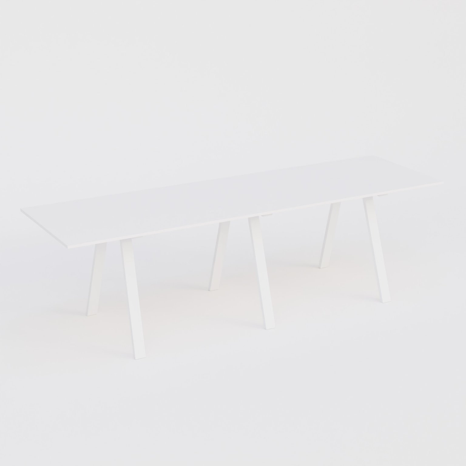Plateau finition Blanc. Pied en forme de A de section 40*100 mm . finiton métal Blanc.