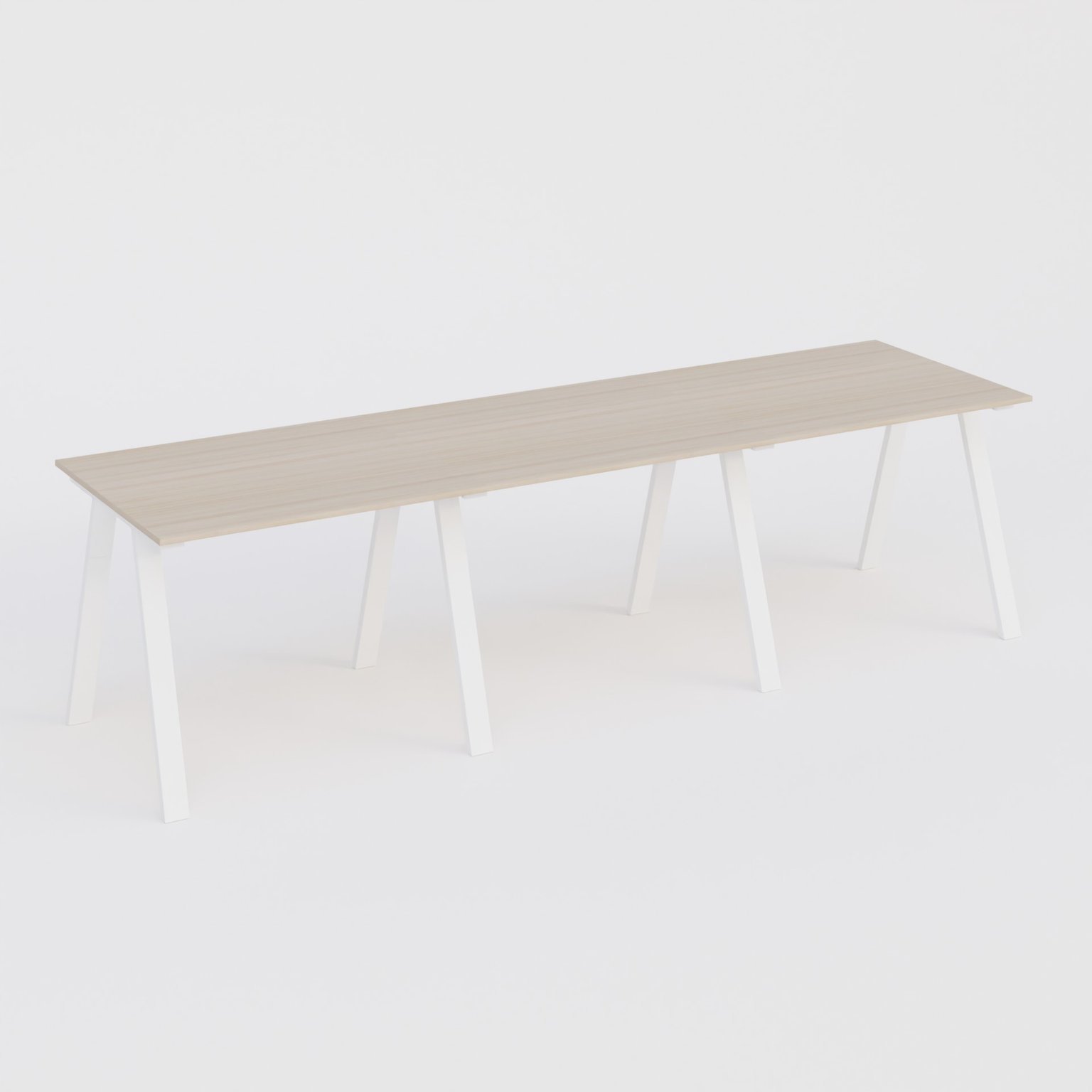 Plateau finition Acacia. Pied en forme de A de section 40*100 mm . finiton métal Blanc.