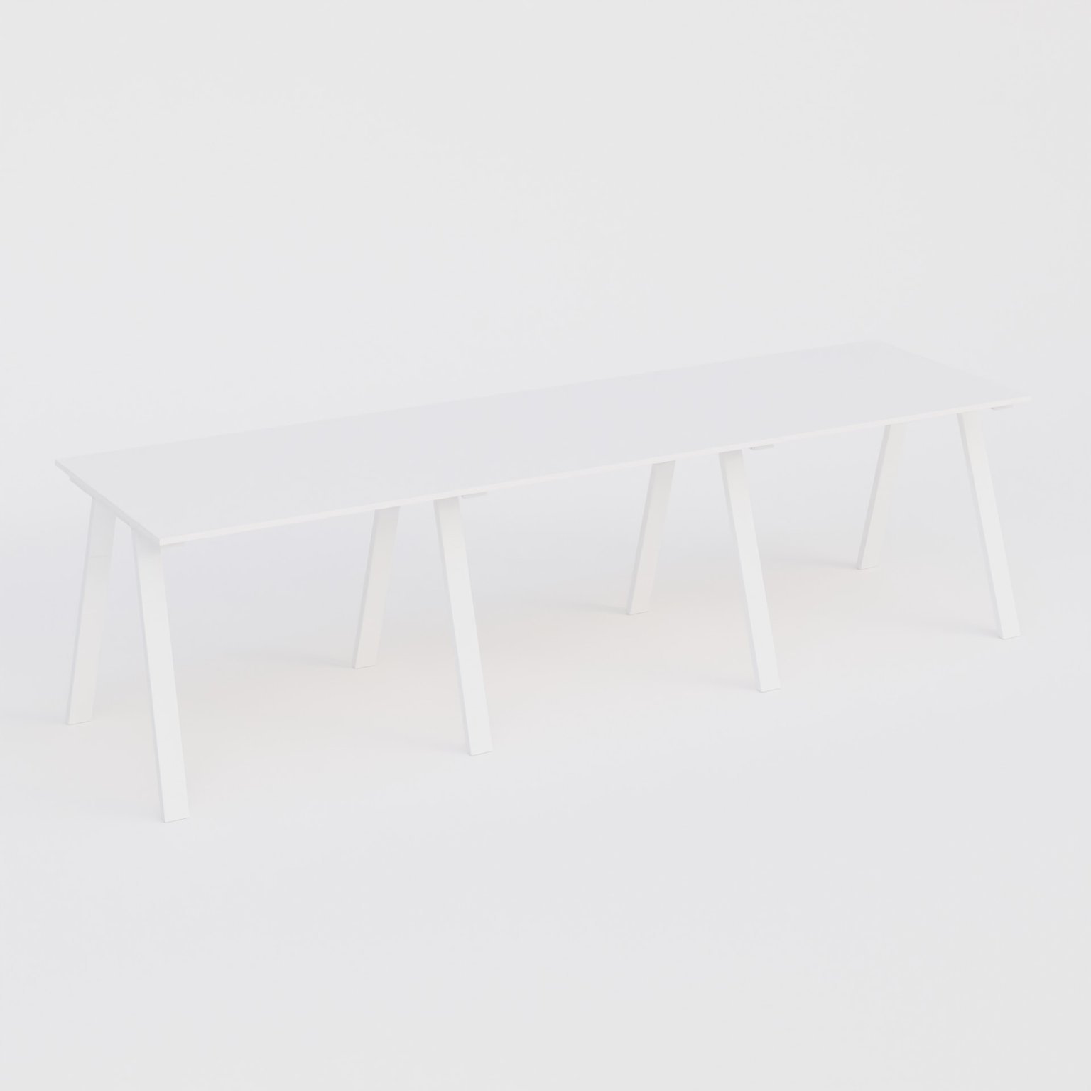 Plateau finition Blanc. Pied en forme de A de section 40*100 mm . finiton métal Blanc.