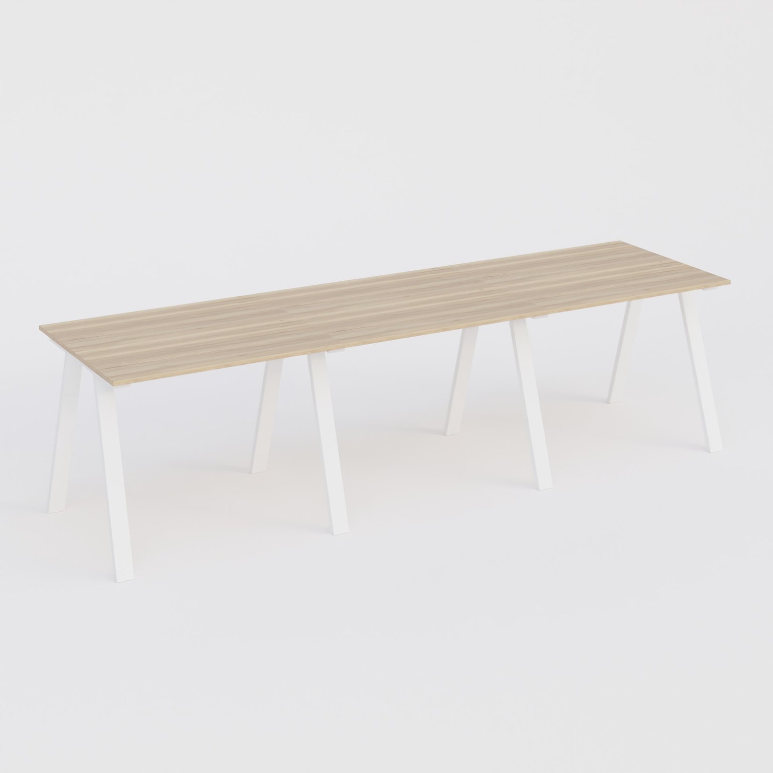Plateau finition Chêne naturel. Pied en forme de A de section 40*100 mm . finiton métal Blanc.