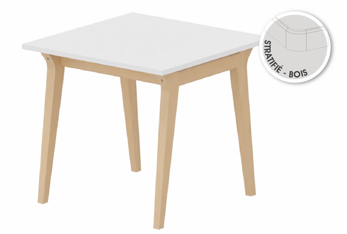 Table MATHILDE plateau ép.24 mm stratifié chant et piètement bois - 80x80 cm - T6