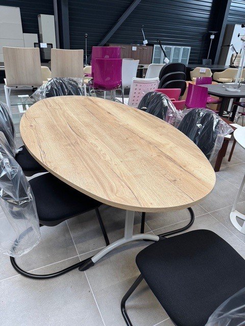 - Table ovale 200 x 110 cm piétement gris clair et plateau finition halifax