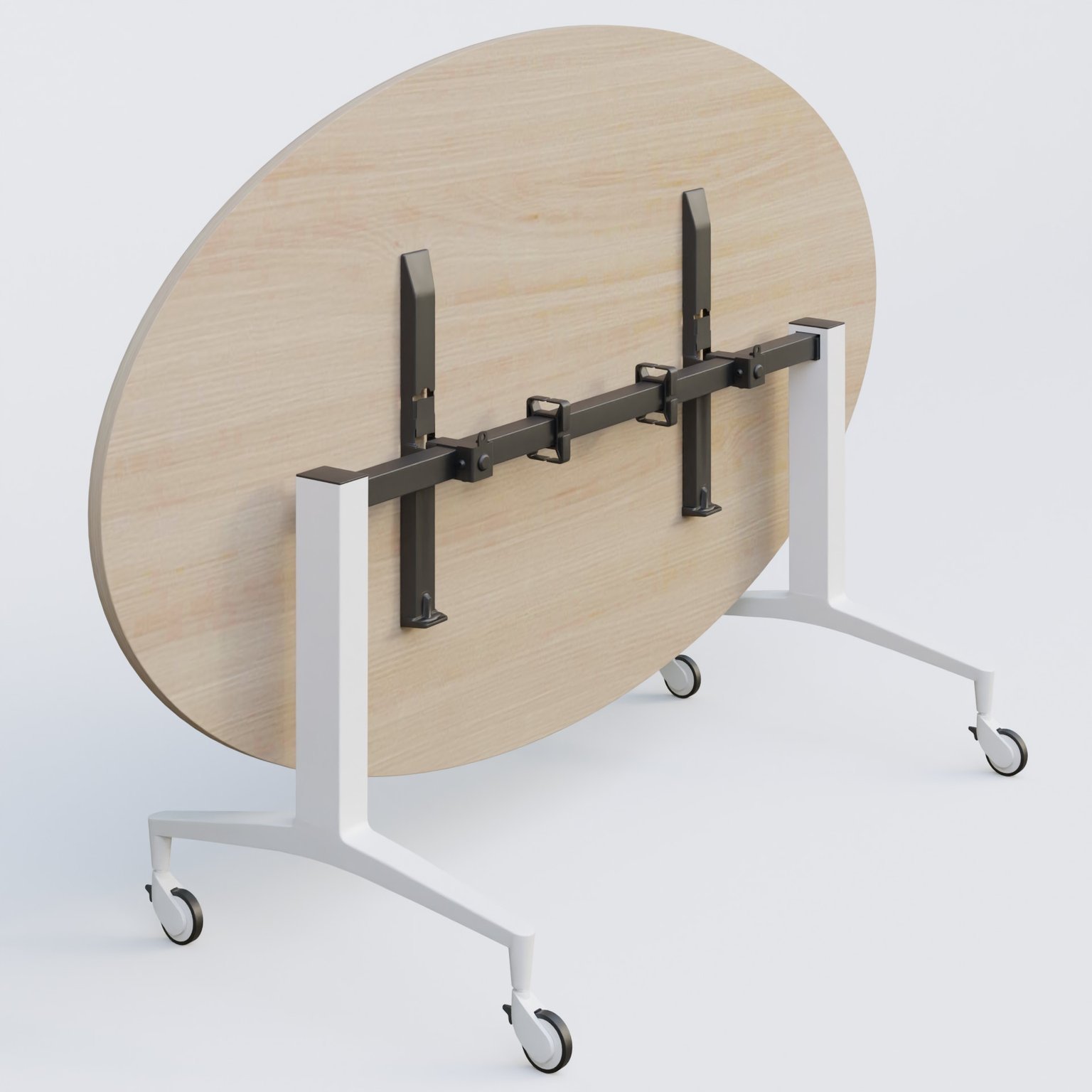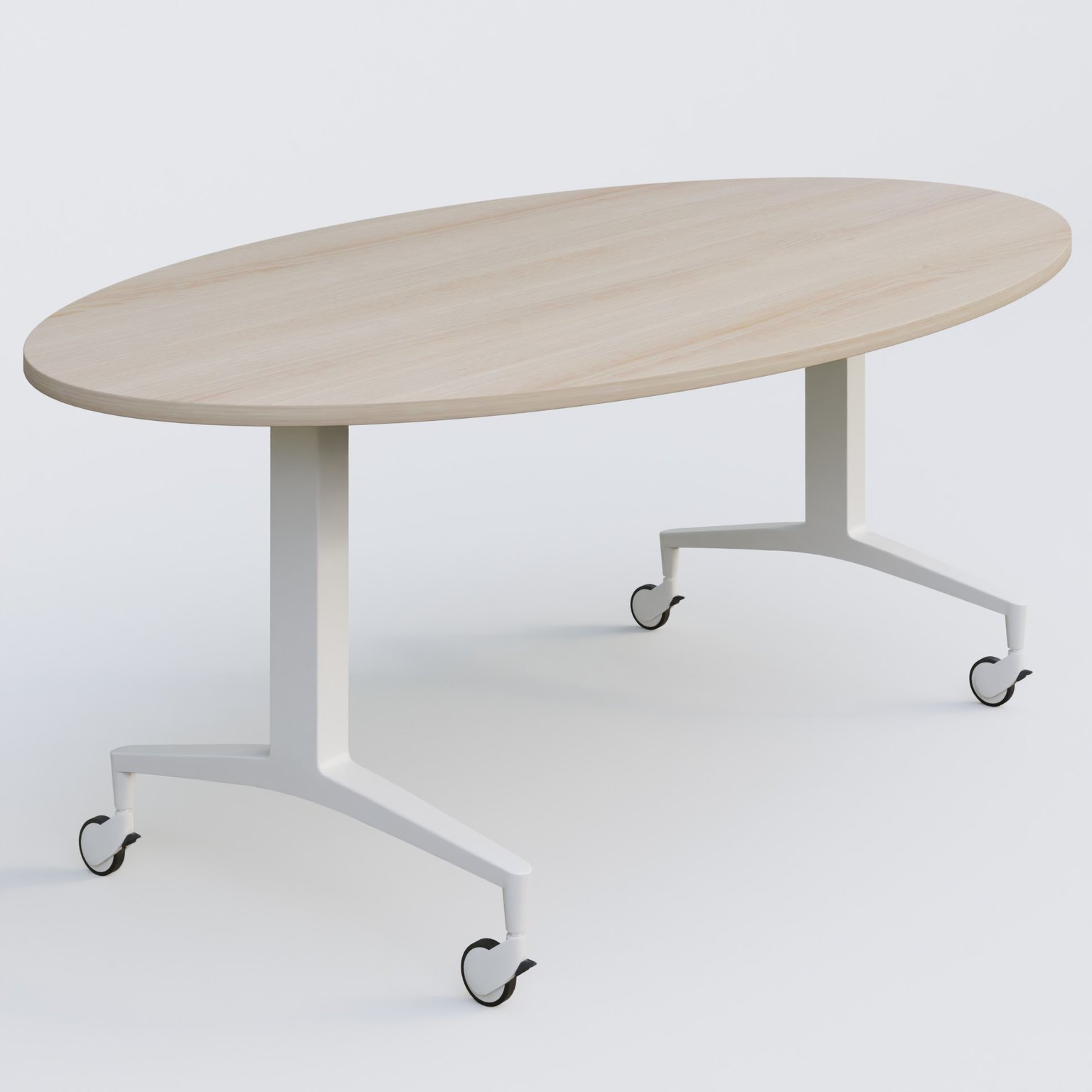 Table ovale de la gamme LEM 200-110 cm avec plateau en 25 mm d'épaisseur. Mécanisme actionné par deux poignées facilement accéssibles sous le plateau.