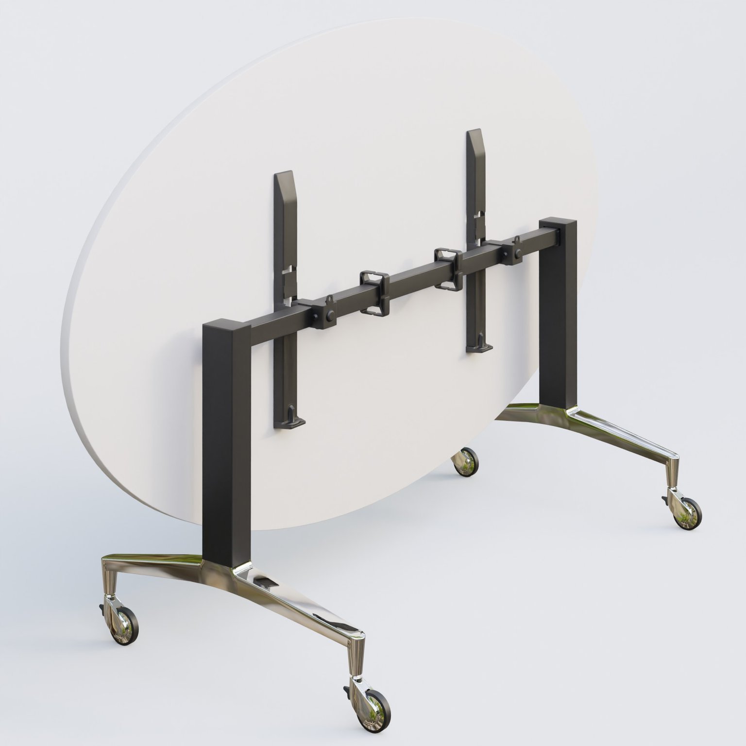 Table ovale de la gamme LEM 200-110 cm. Plateau Blanc et pietement Noir/Chrome.