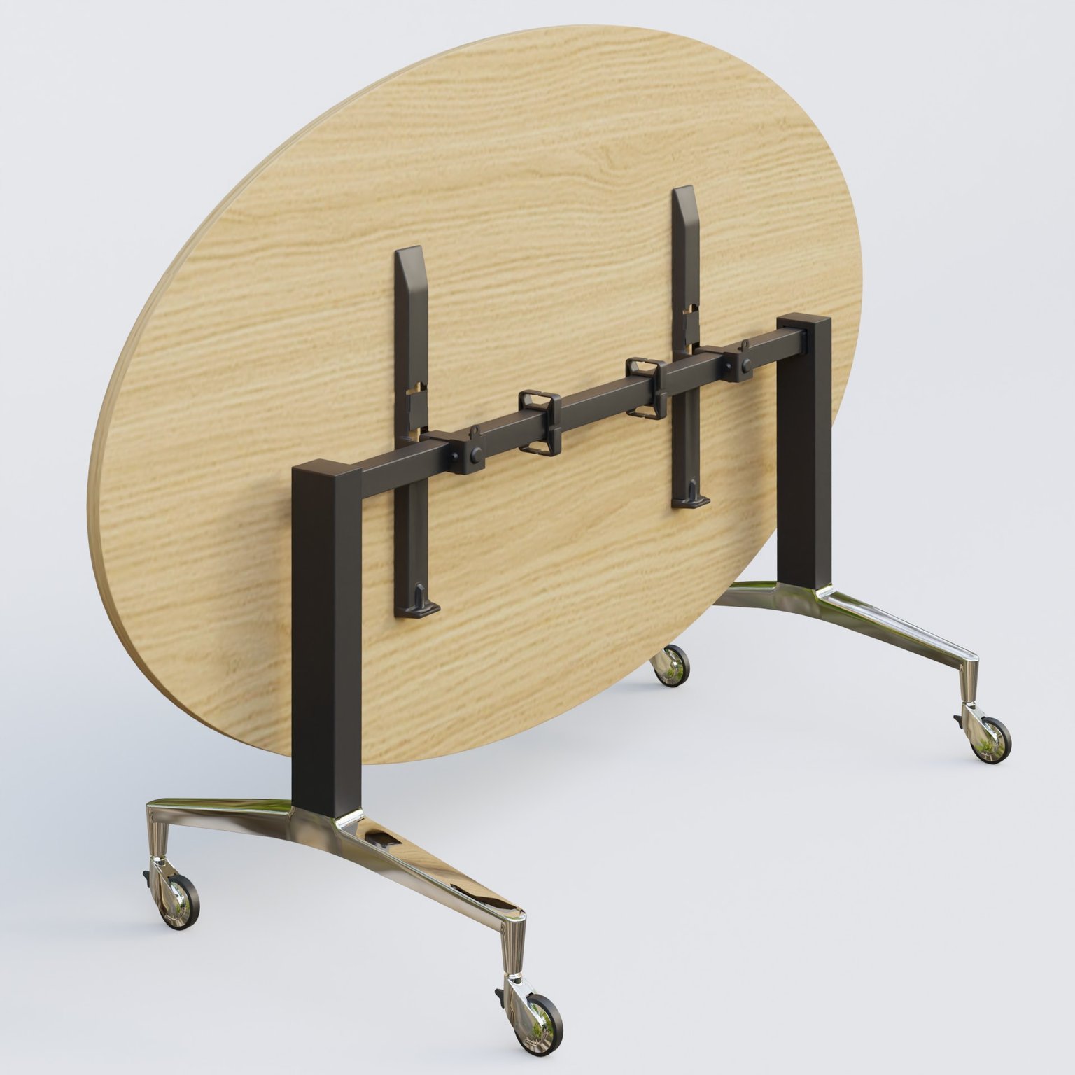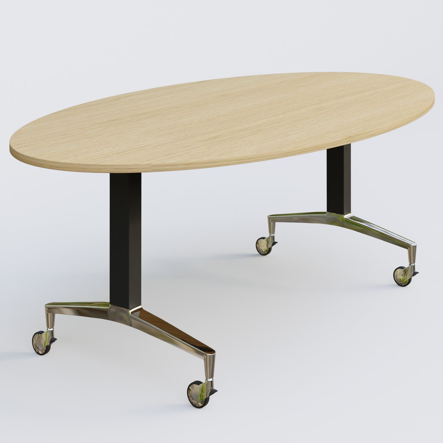 Table ovale de la gamme LEM 200-110 cm. Plateau Chêne clair et pietement Noir/Chrome.