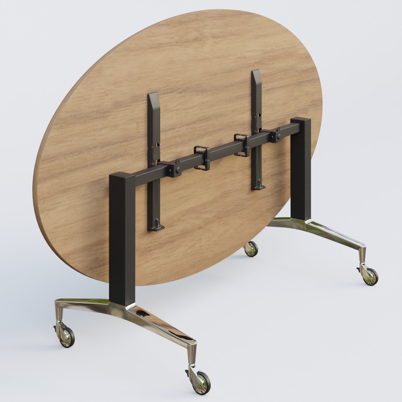 Table ovale de la gamme LEM 200-110 cm avec plateau en 25 mm d'épaisseur. Mécanisme actionné par deux poignées facilement accéssibles sous le plateau.