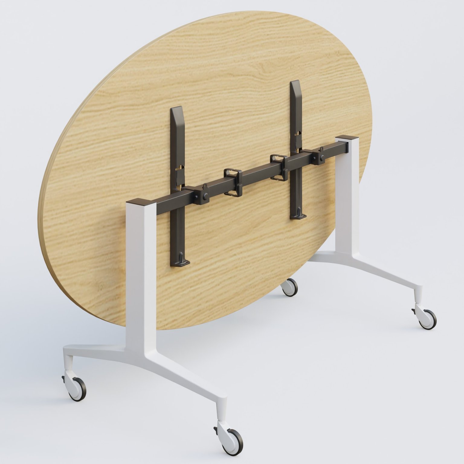 Table ovale de la gamme LEM 200-110 cm avec plateau en 25 mm d'épaisseur. Mécanisme actionné par deux poignées facilement accéssibles sous le plateau.