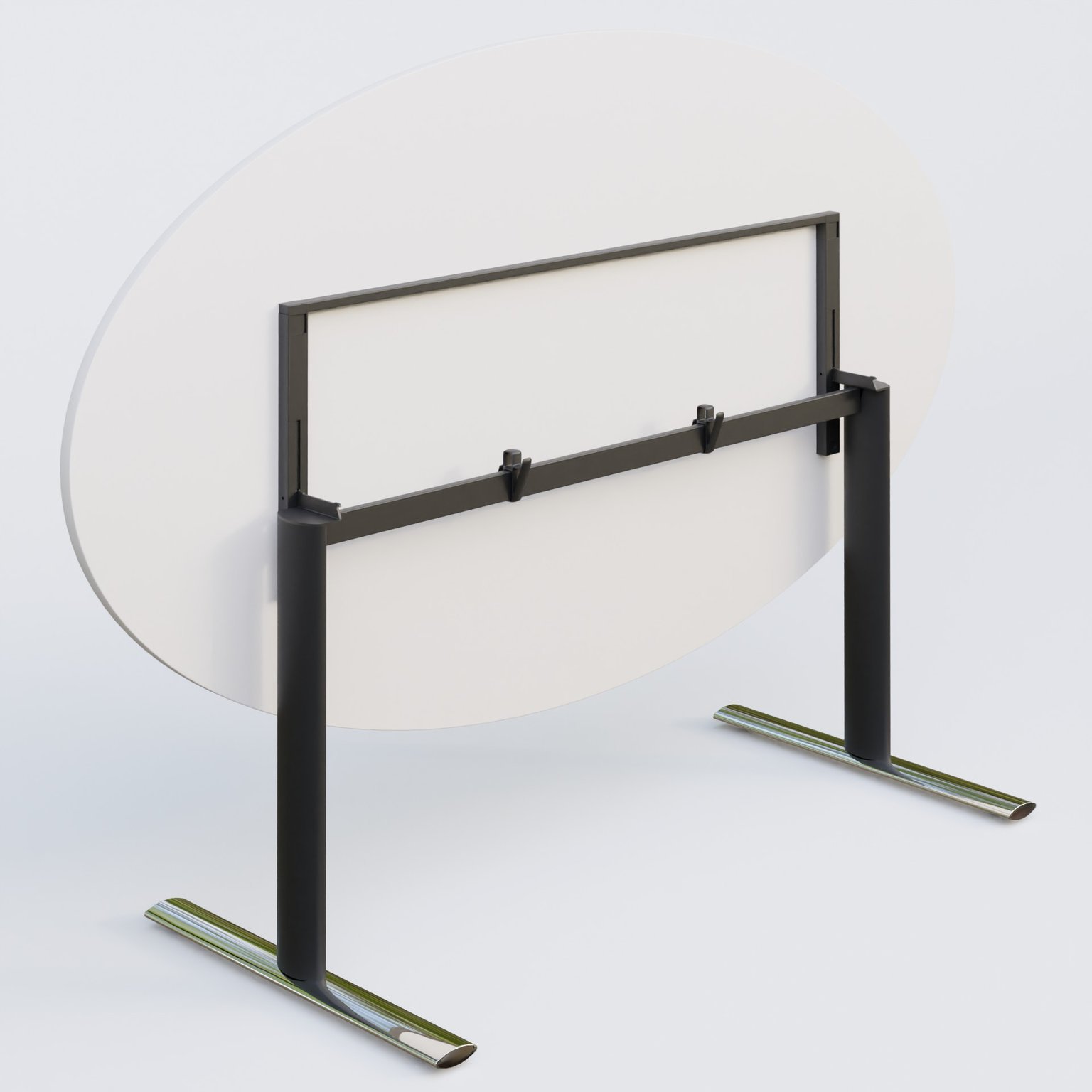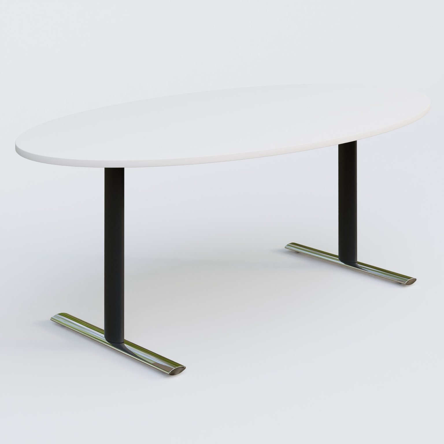 Table ovale gamme Pure 200-110 cm. Plateau Blanc et pietement Noir/Chrome.