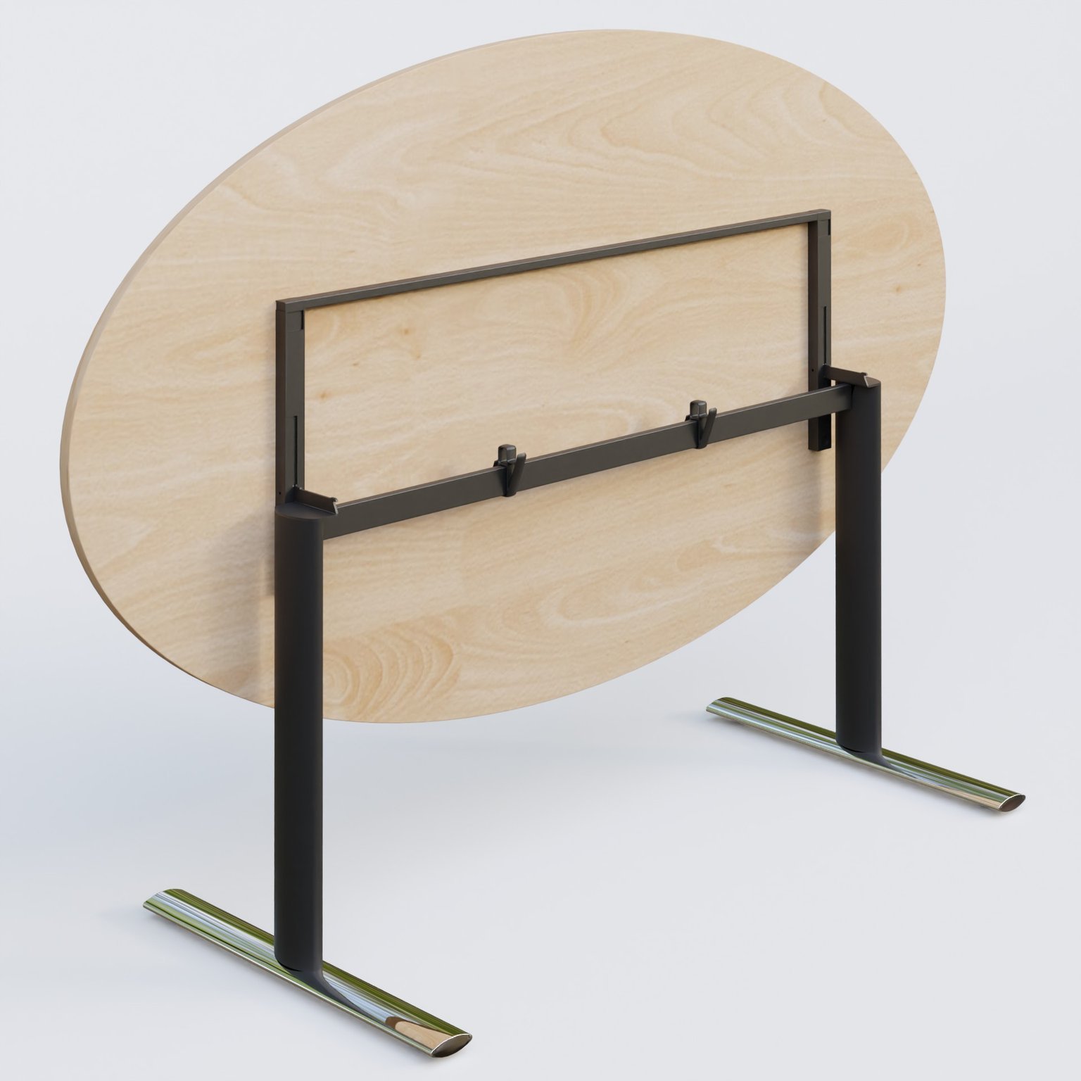 Table ovale gamme Pure 200-110 cm avec plateau en 25 mm d'épaisseur. Mécanisme de blocage/déblocage avec une barre sous le plateau.