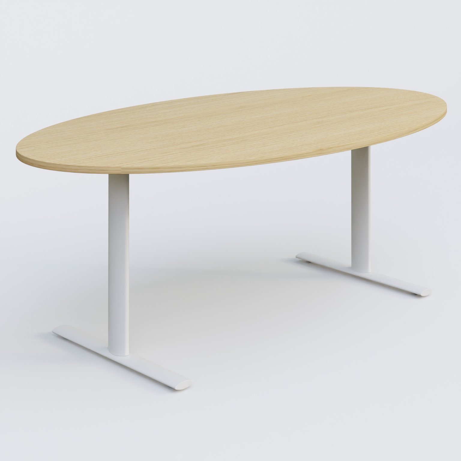 Table ovale gamme Pure 200-110 cm. Plateau Chêne clair et pietement Blanc.