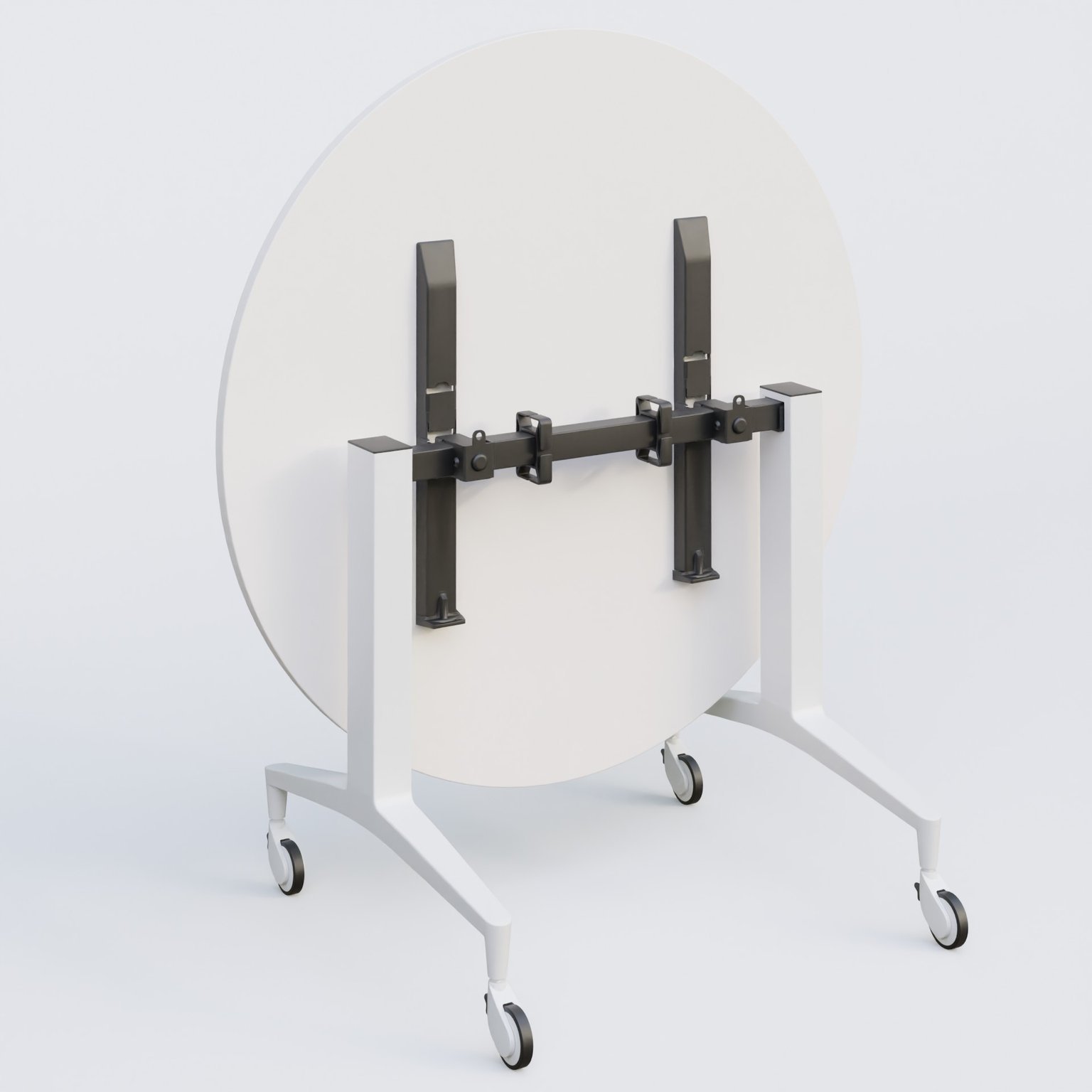 Table ronde de la gamme LEM D110 cm avec plateau en 25 mm d'épaisseur. Mécanisme actionné par deux poignées facilement accéssibles sous le plateau.