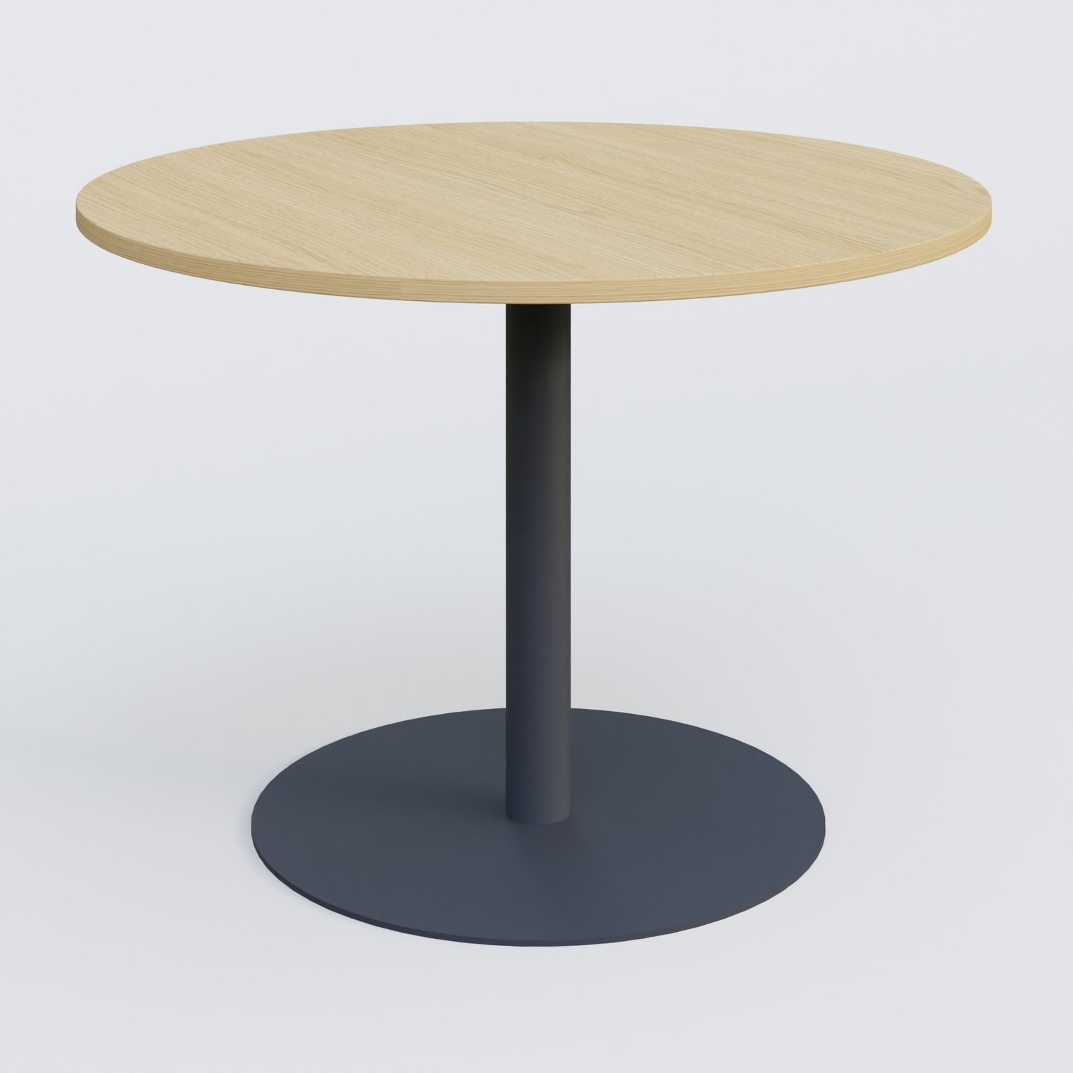 Table ronde diametre 100 cm avec pieds colonne centrale. Plateau Chêne clair et pietement Anthracite