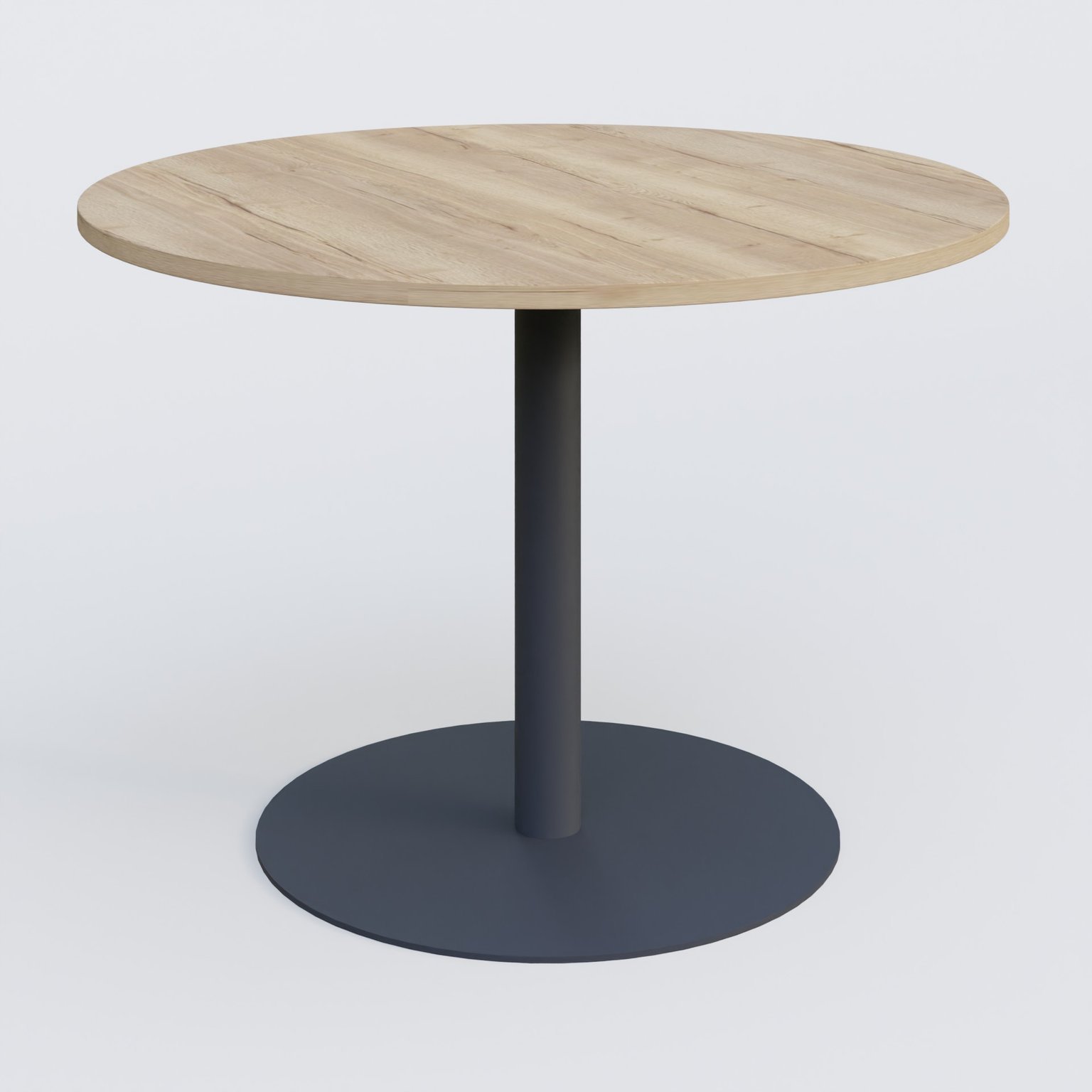Table ronde diametre 100 cm avec pieds colonne centrale. Plateau Chêne naturel et pietement Anthracite