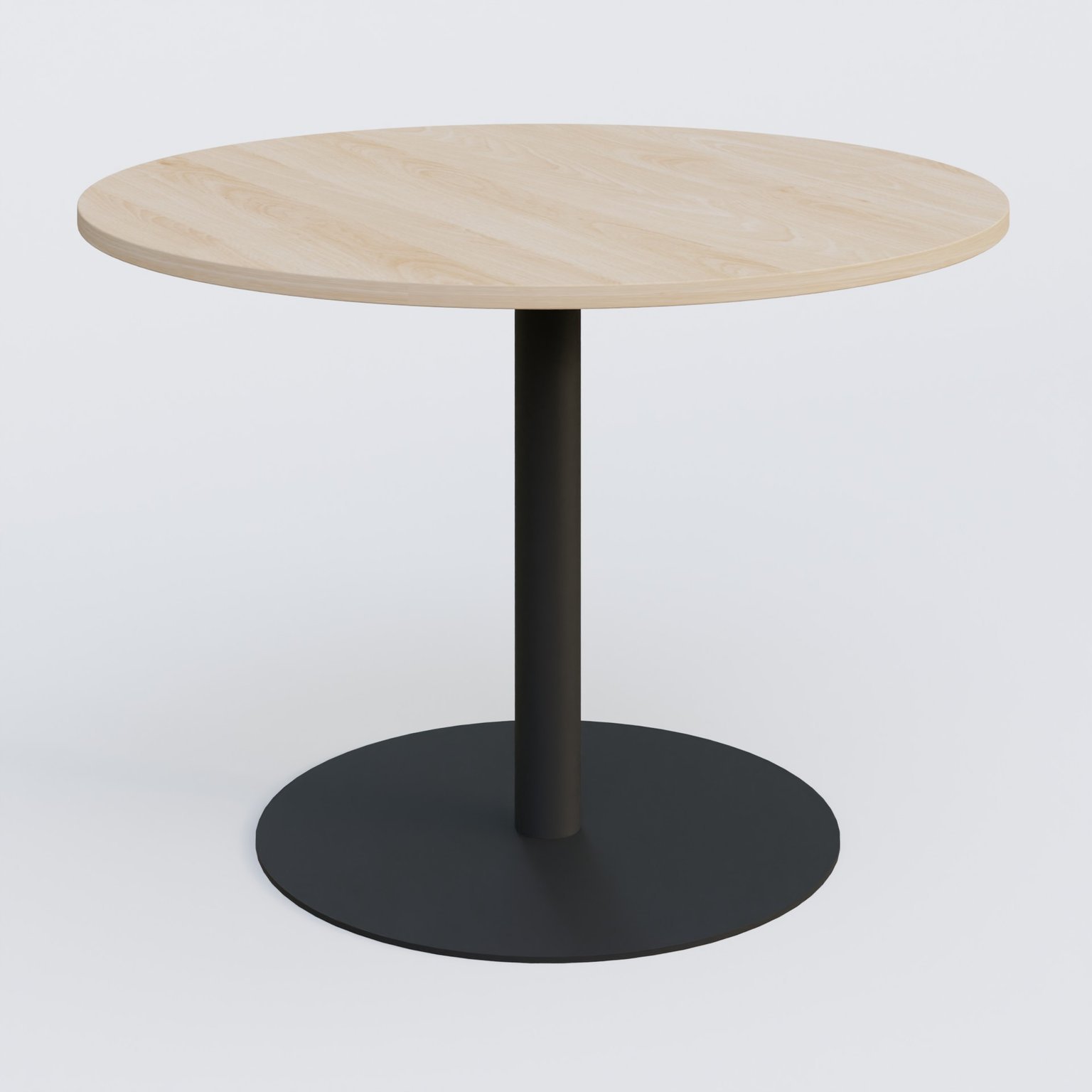 Table ronde diametre 100 cm avec pieds colonne centrale. Plateau Chêne clair et pietement Noir Mat noirGraineMatNg cheneCe
