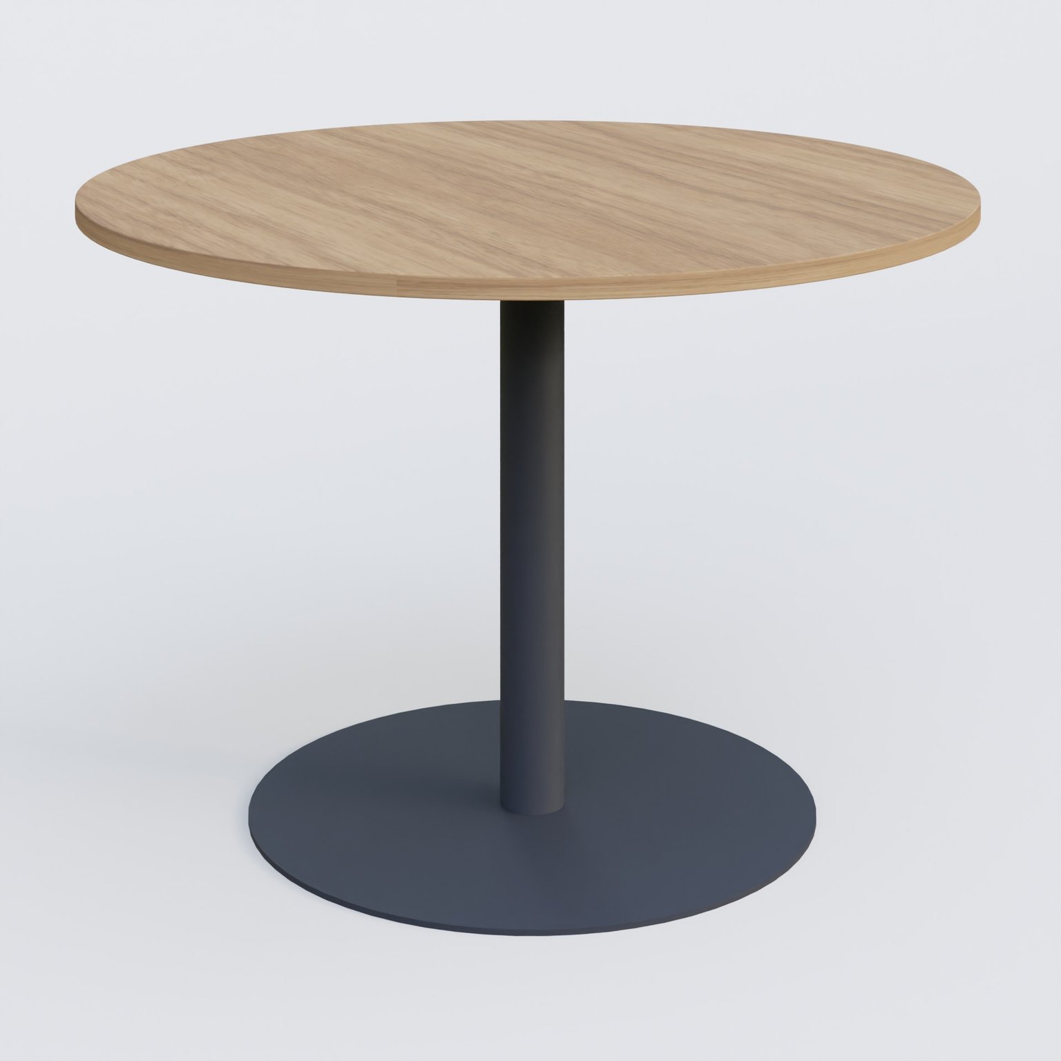 Table ronde diametre 100 cm avec pieds colonne centrale. Plateau Noyer et pietement Anthracite