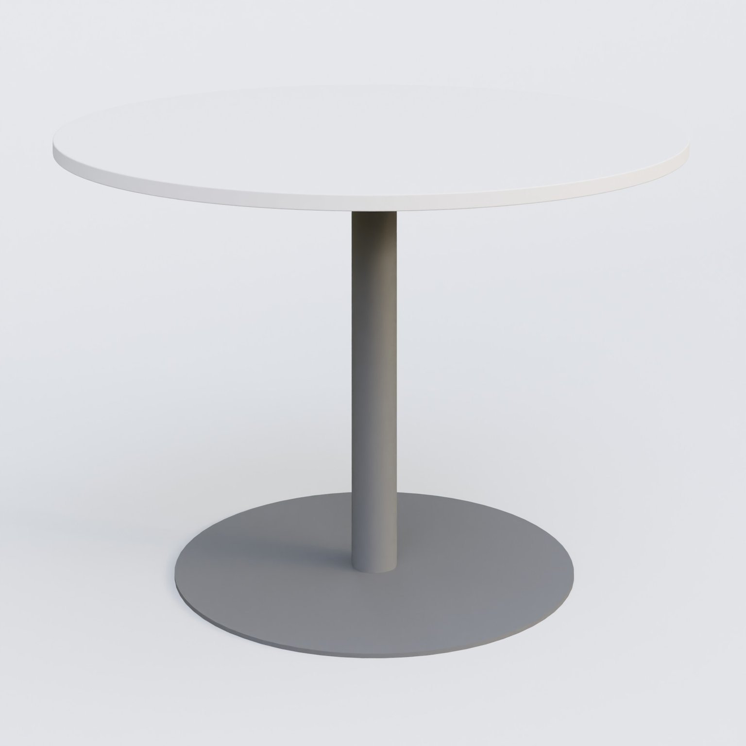 Table ronde diametre 100 cm avec pieds colonne centrale. Plateau Blanc et pietement Aluminium