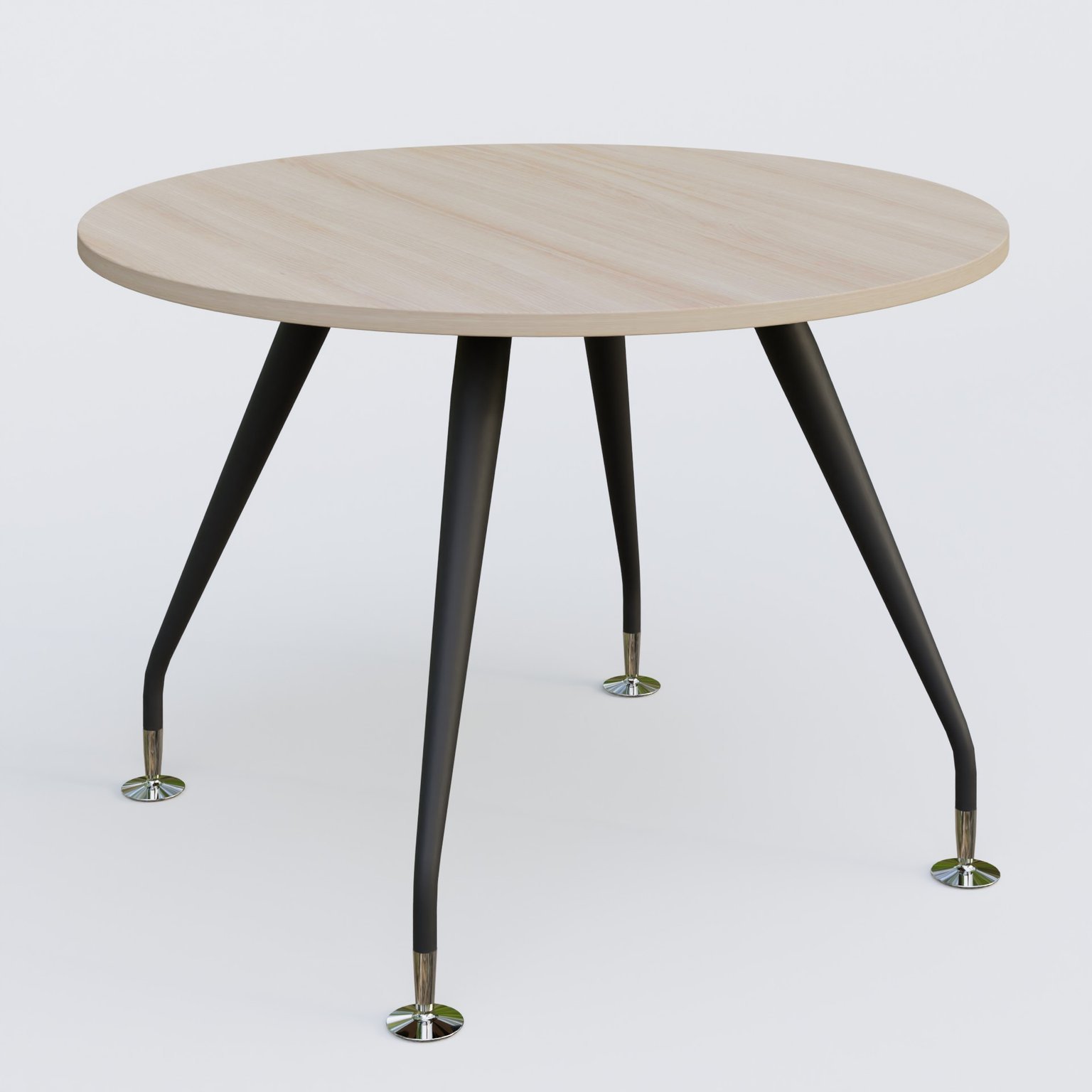 Table ronde diametre 110 cm avec 4 pieds de la gamme K5. Plateau Acacia et pietement Noir Mat