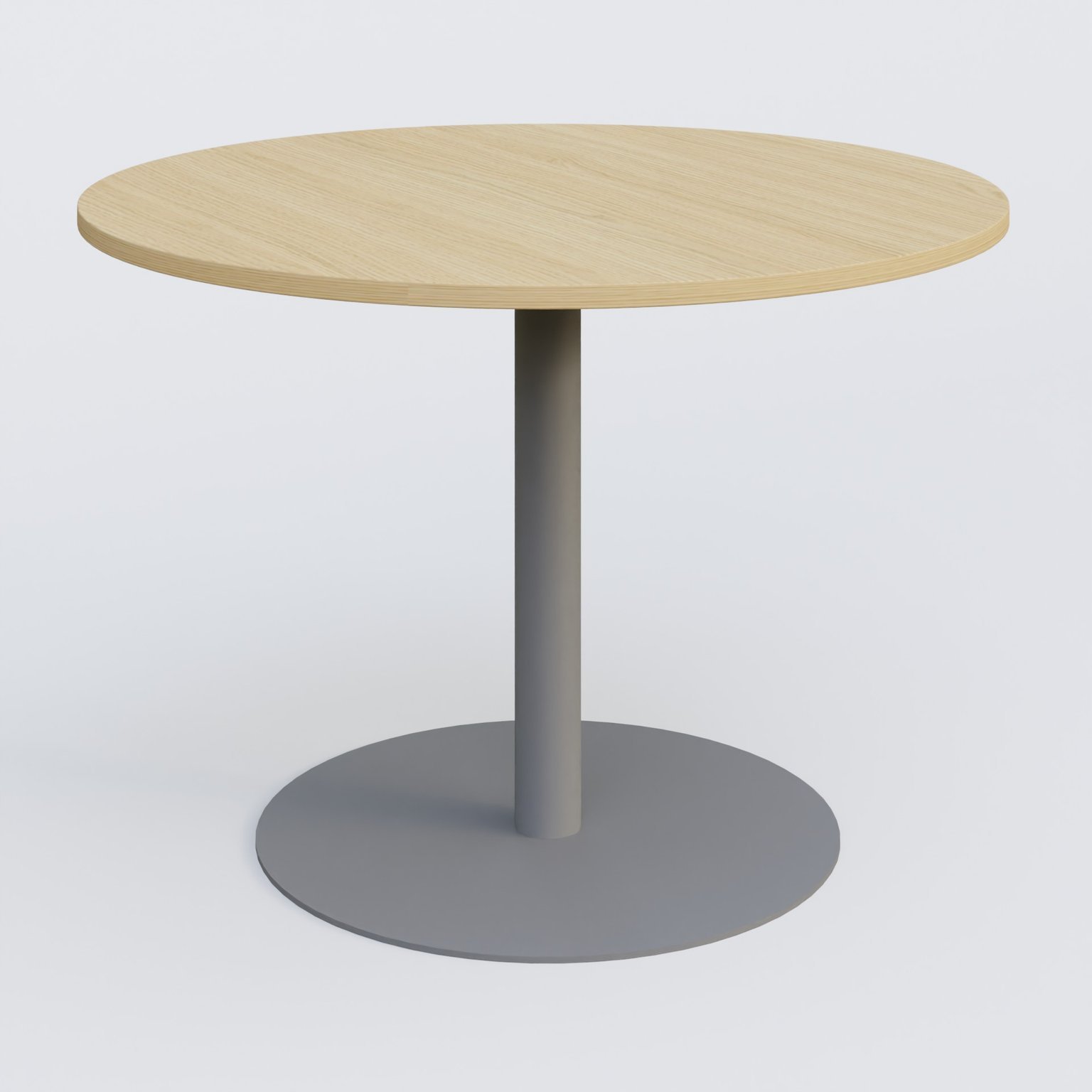 Table ronde diametre 110 cm avec pieds colonne centrale. Plateau Chêne clair et pietement Aluminium