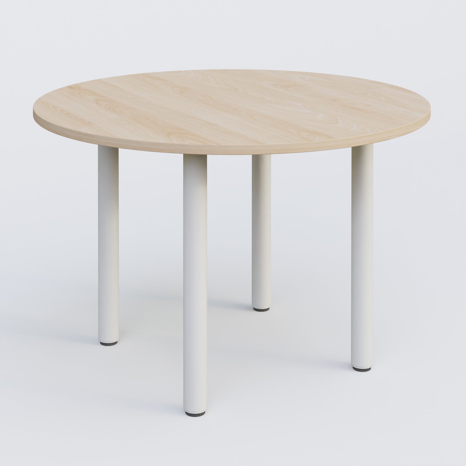 Table ronde diametre 110 cm avec quatres pieds fixes. Plateau Hêtre et pietement Blanc