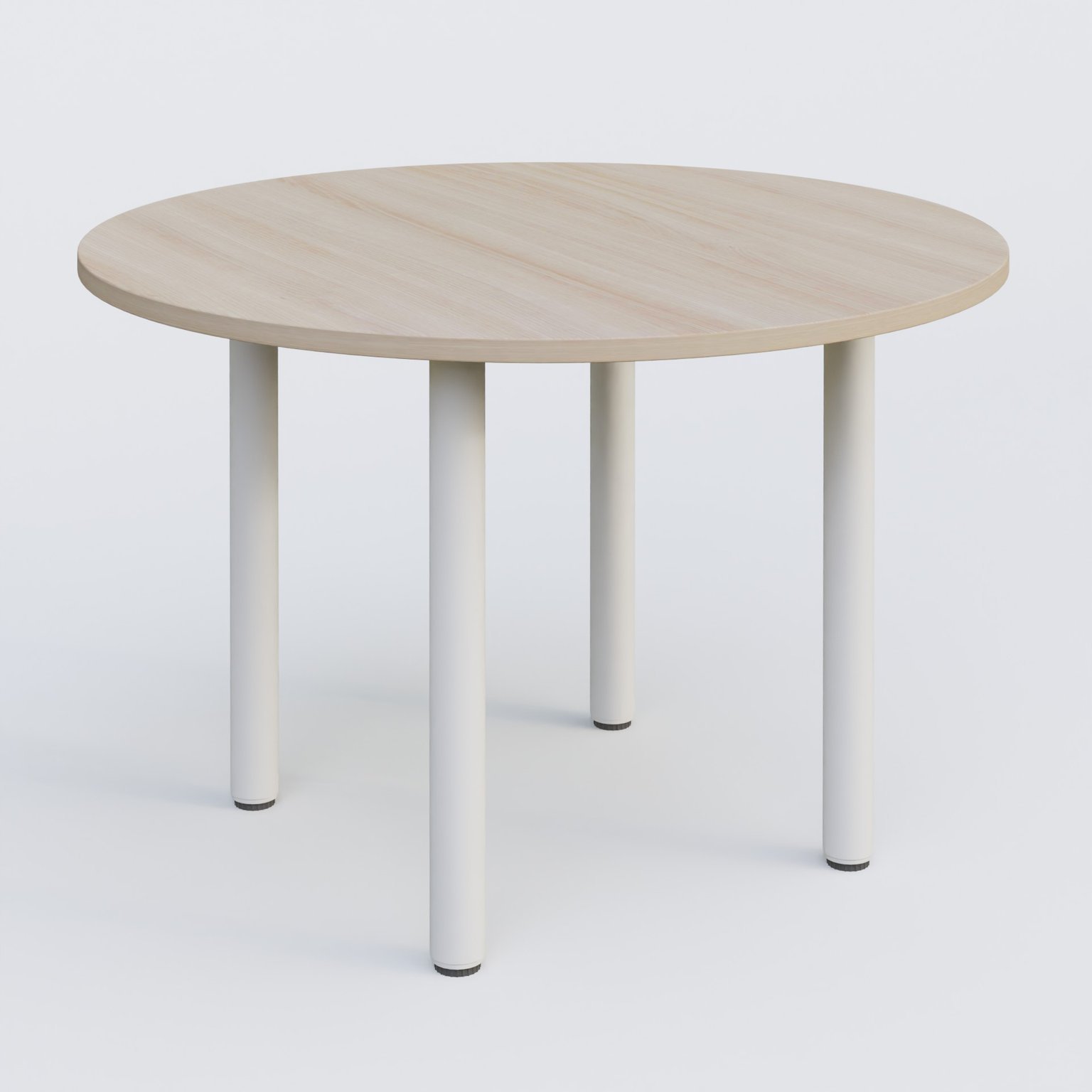 Table ronde diametre 110 cm avec quatres pieds fixes. Plateau Chêne clair et pietement Blanc blancBl cheneCe