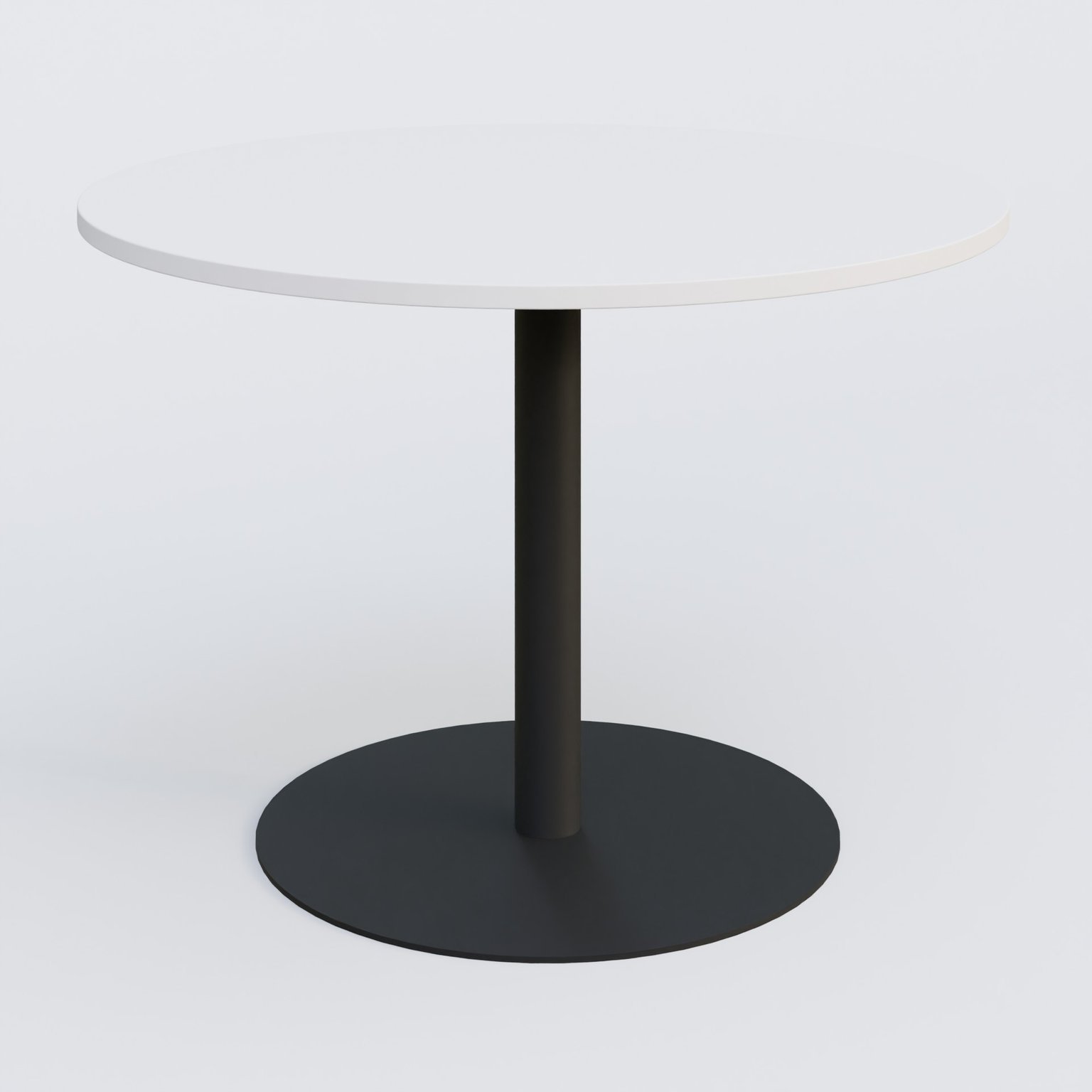 Table ronde diametre 120 cm avec pieds colonne centrale. Plateau Blanc et pietement Noir Mat